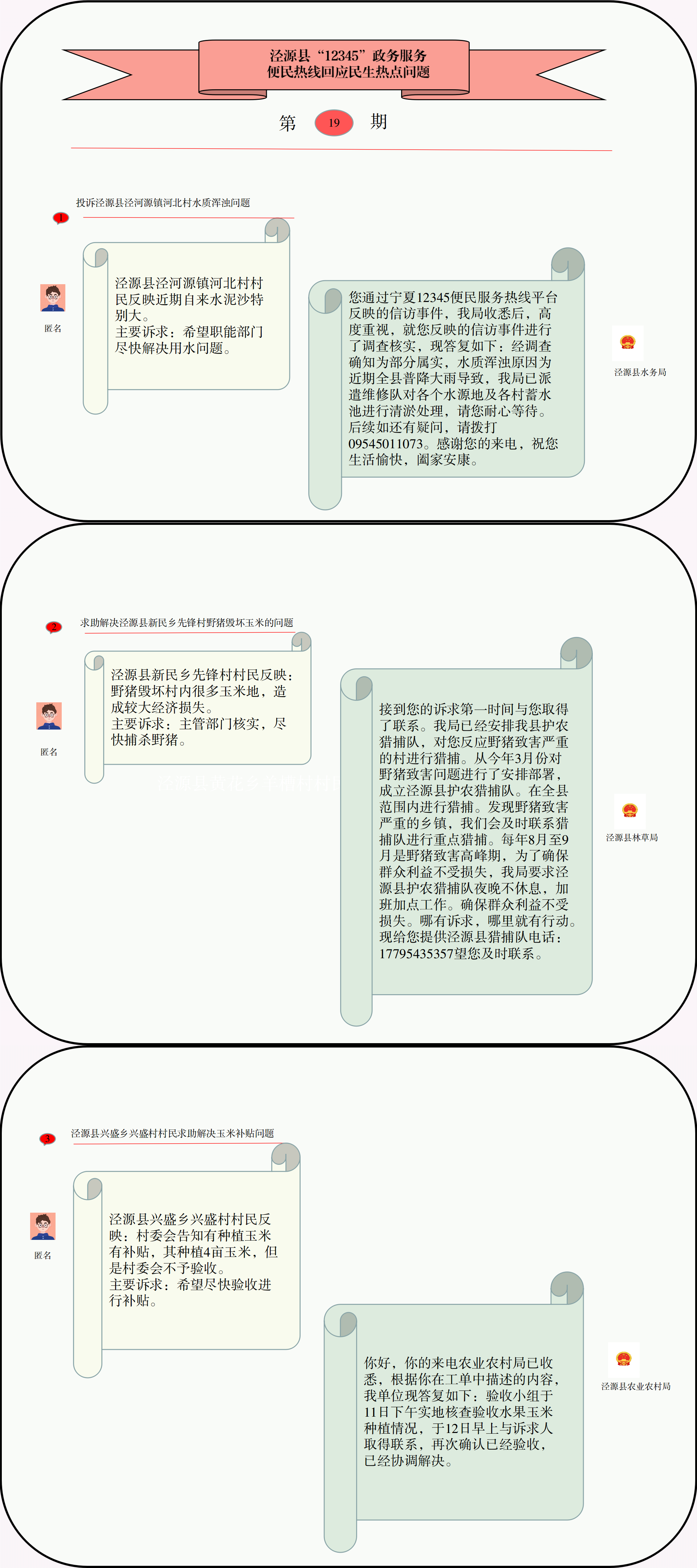 泾源县“12345”政务服务便民热线回应民生热点问题第19期