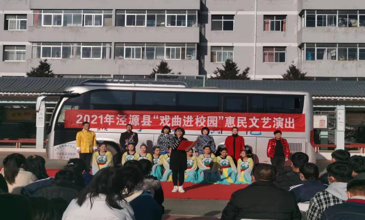 “戏曲进校园”是弘扬优秀传统文化的重要方式之一,2021年我县共开展“戏曲进校园”惠民演出活动6场,惠及5000余名学生,为进一步丰富校园文化生活,培育学生戏曲素养,推动戏曲文化传承发展夯实了基础。