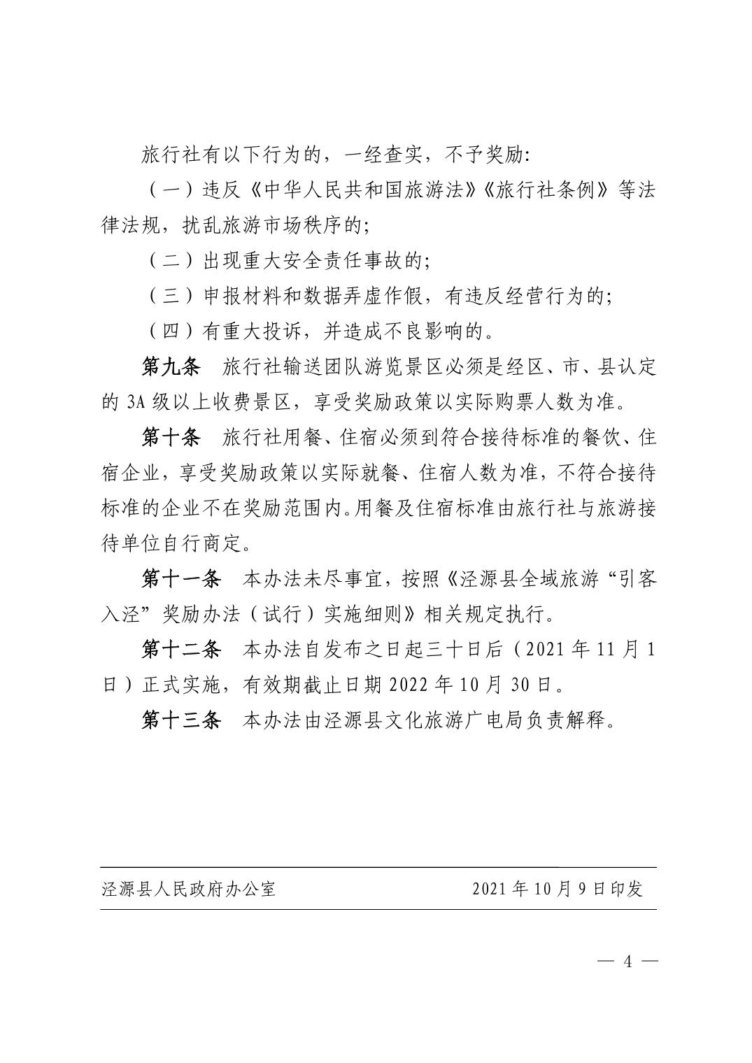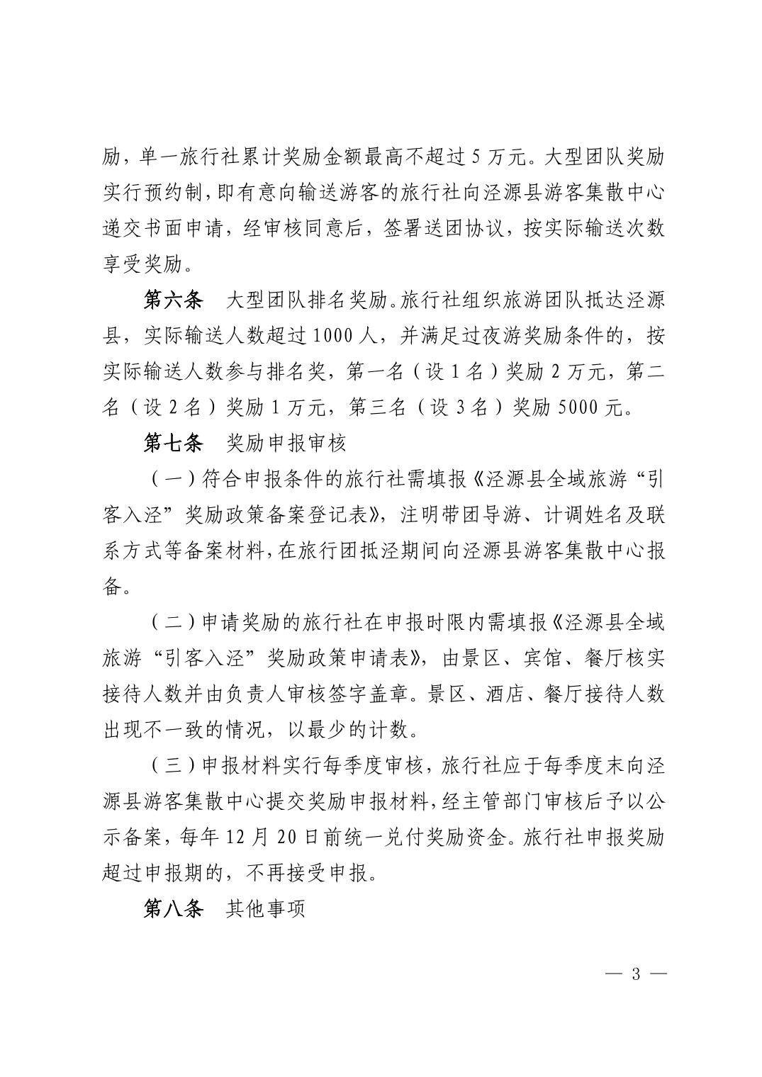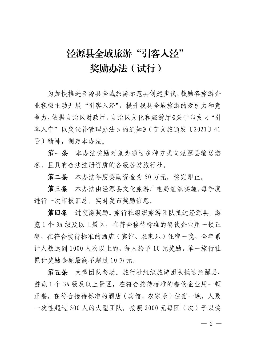 泾源县全域旅游“引客入泾” 奖励办法(试行)