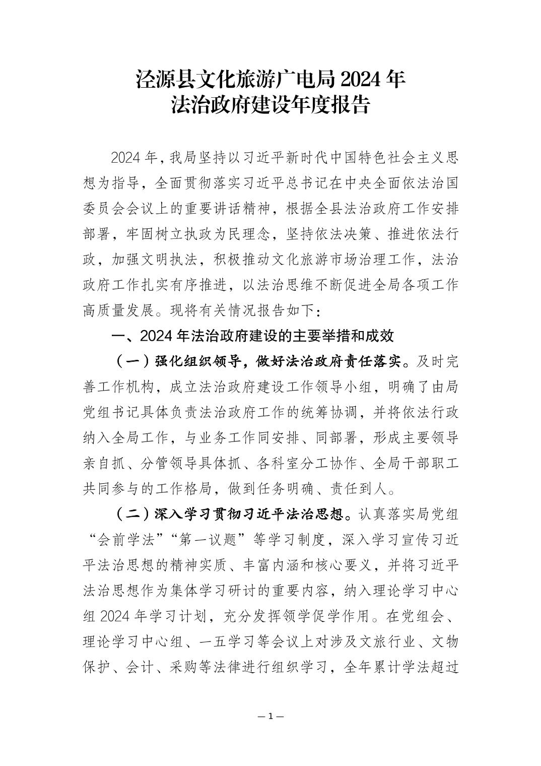 泾源县文化旅游广电局2024年法治政府建设年度报告