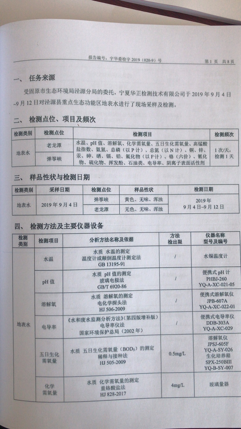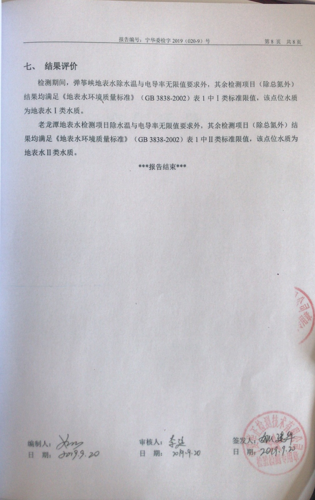 2019年9月份水质检测情况
