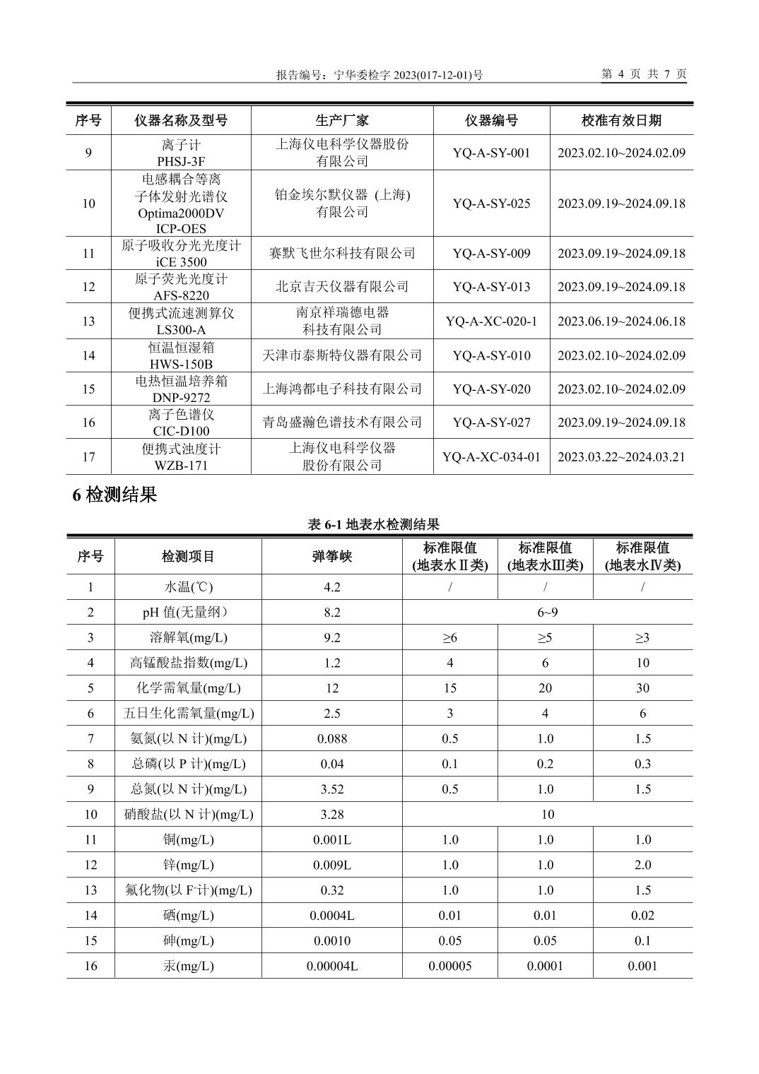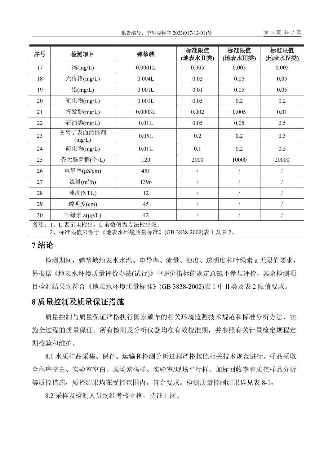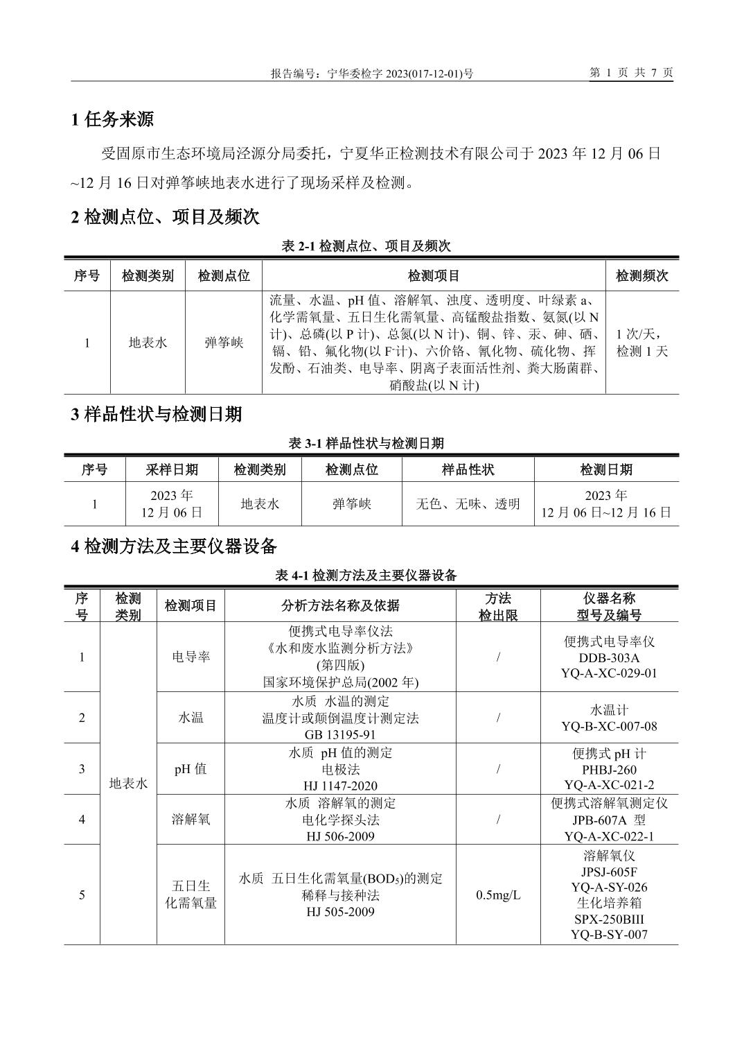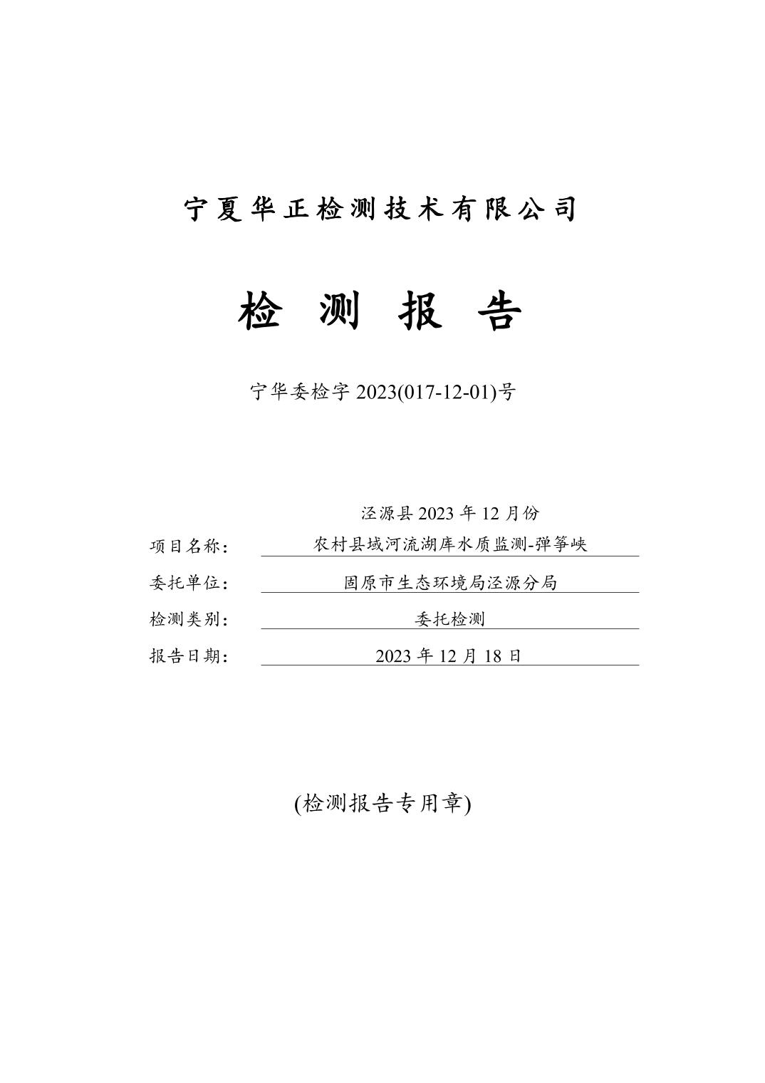 泾源县2023年12月份县域生态环境质量监测弹筝峡出境断面水质监测报告