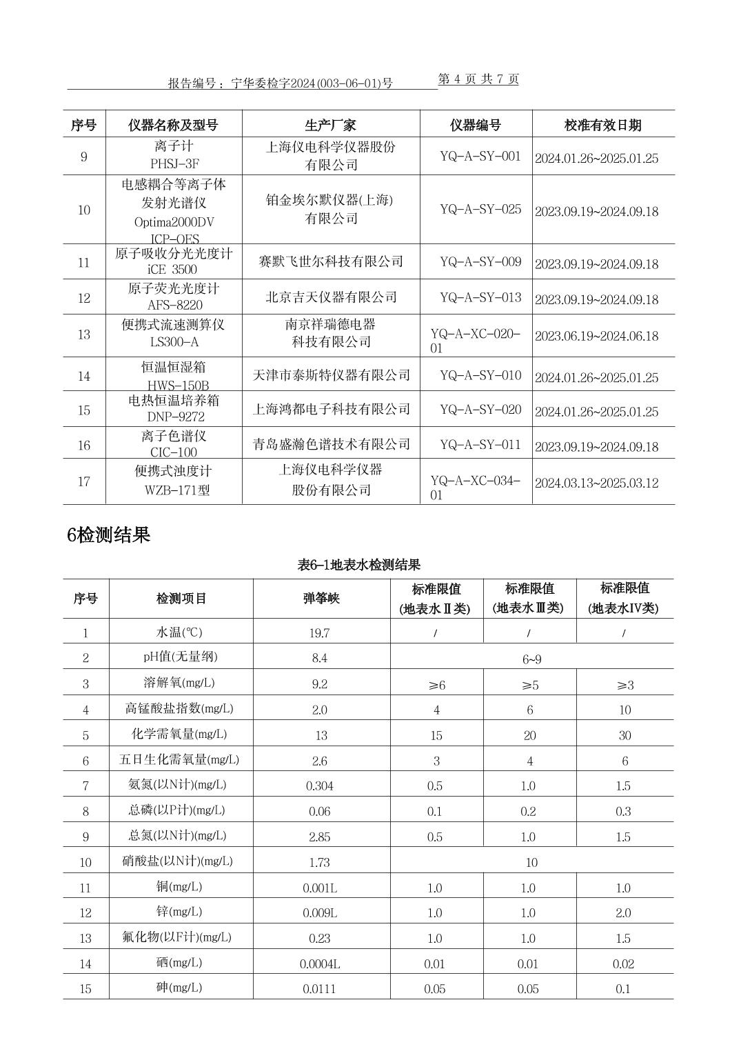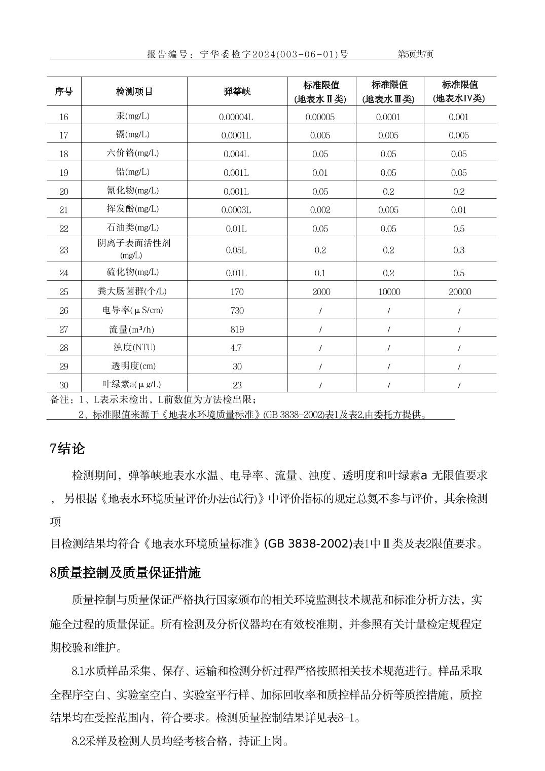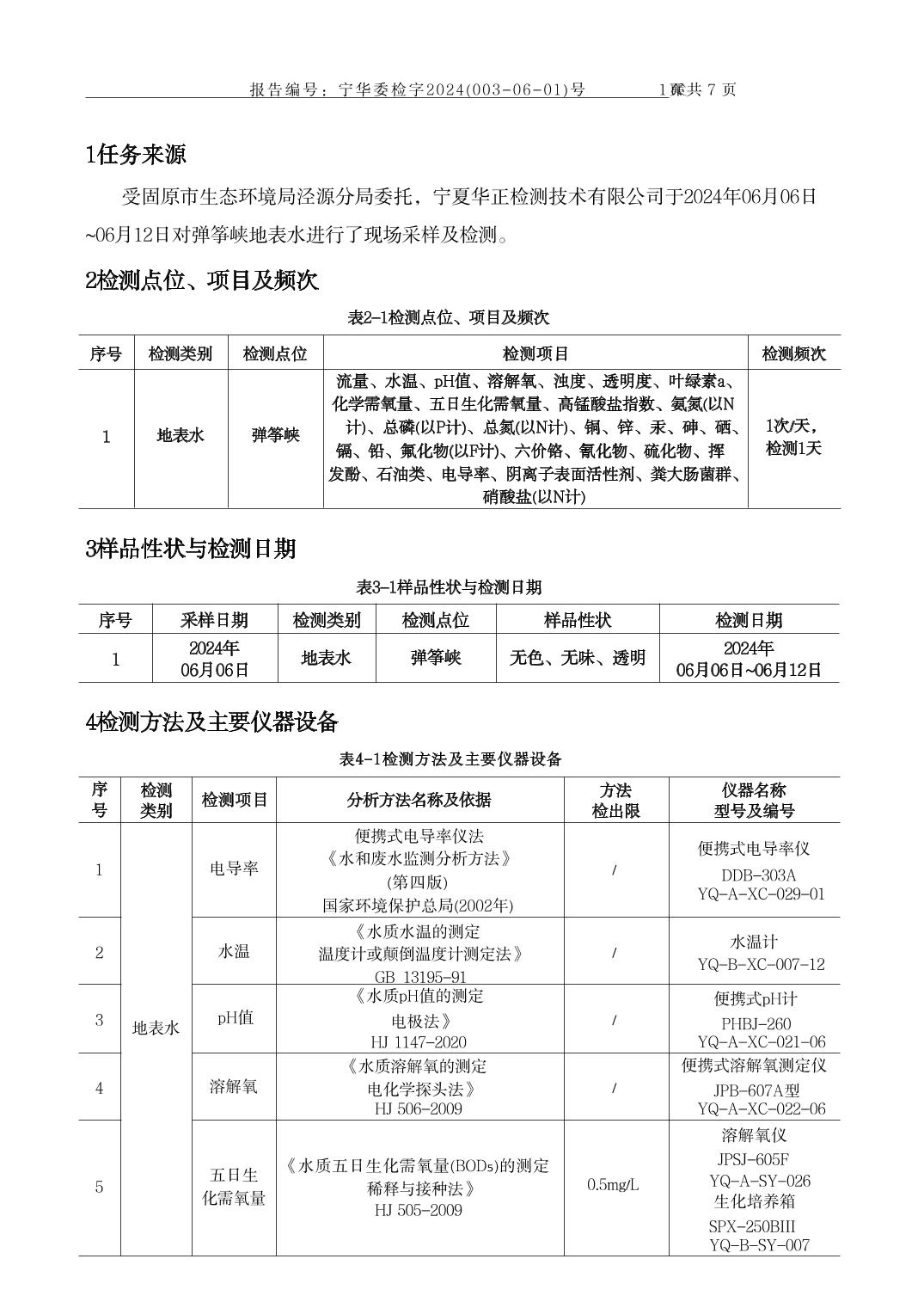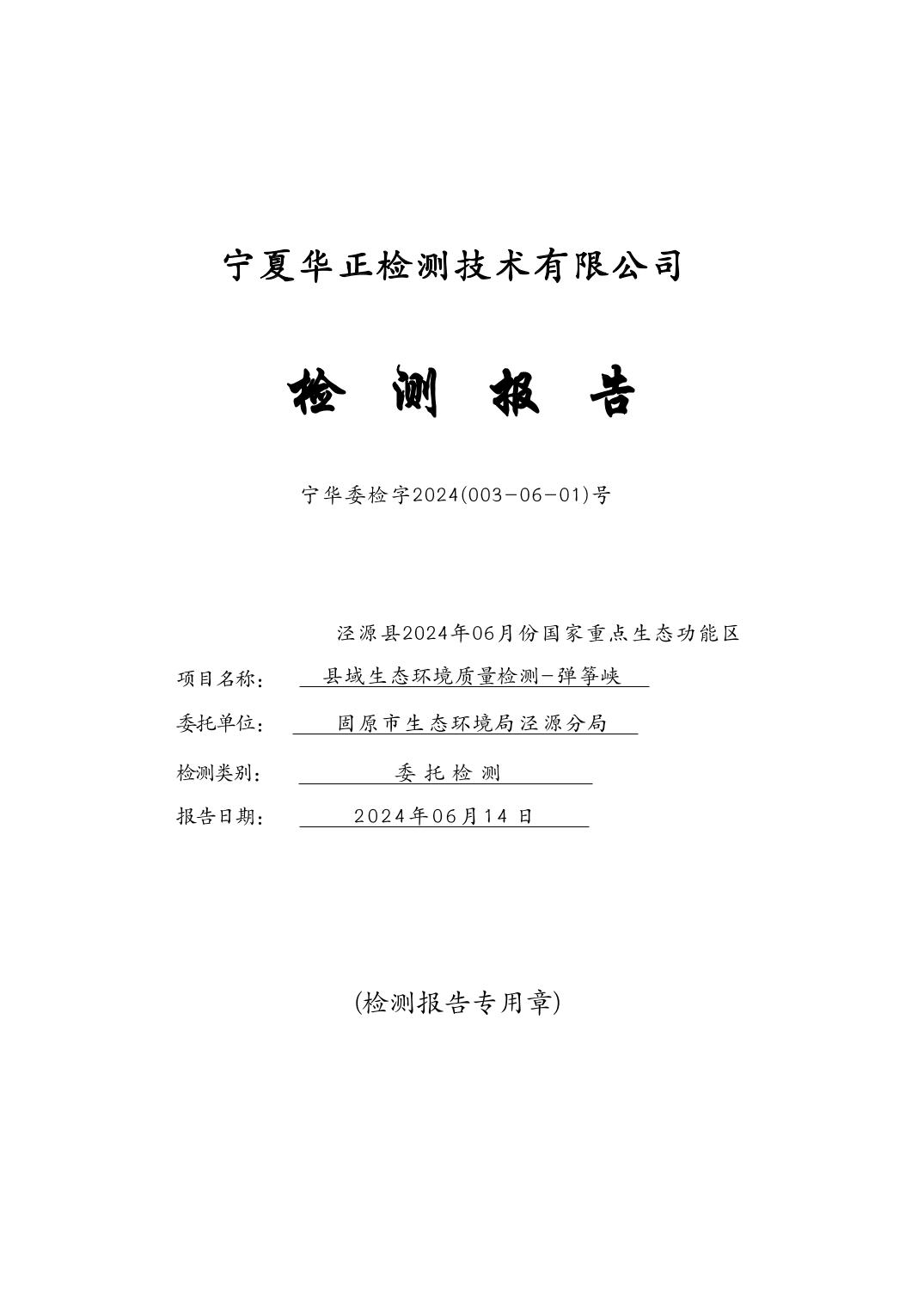 泾源县2024年6月份县域生态环境质量监测弹筝峡出境断面水质监测报告