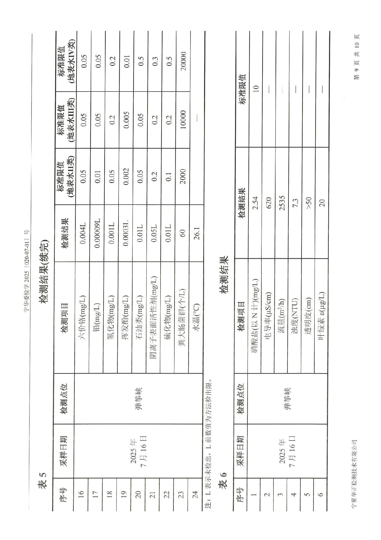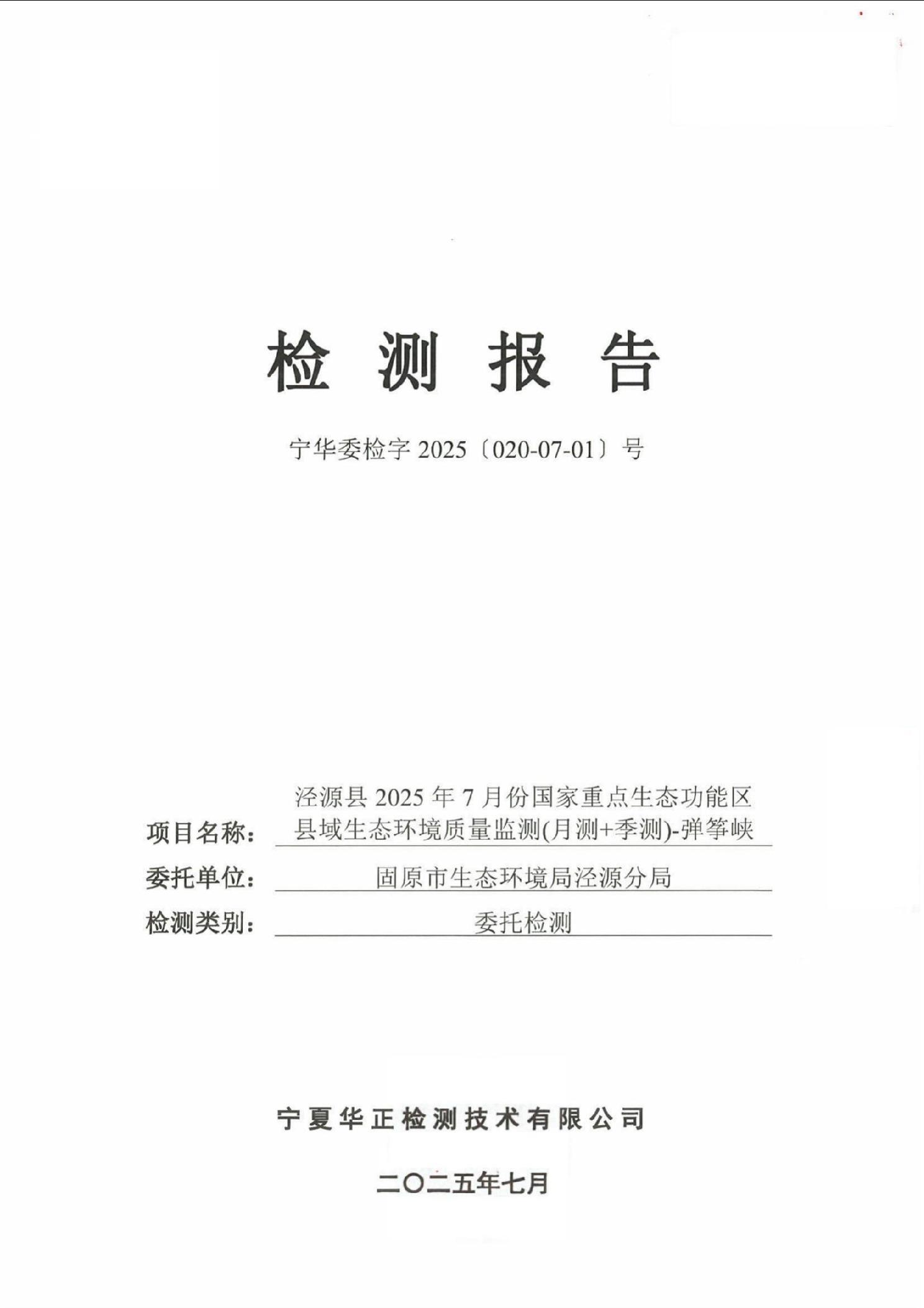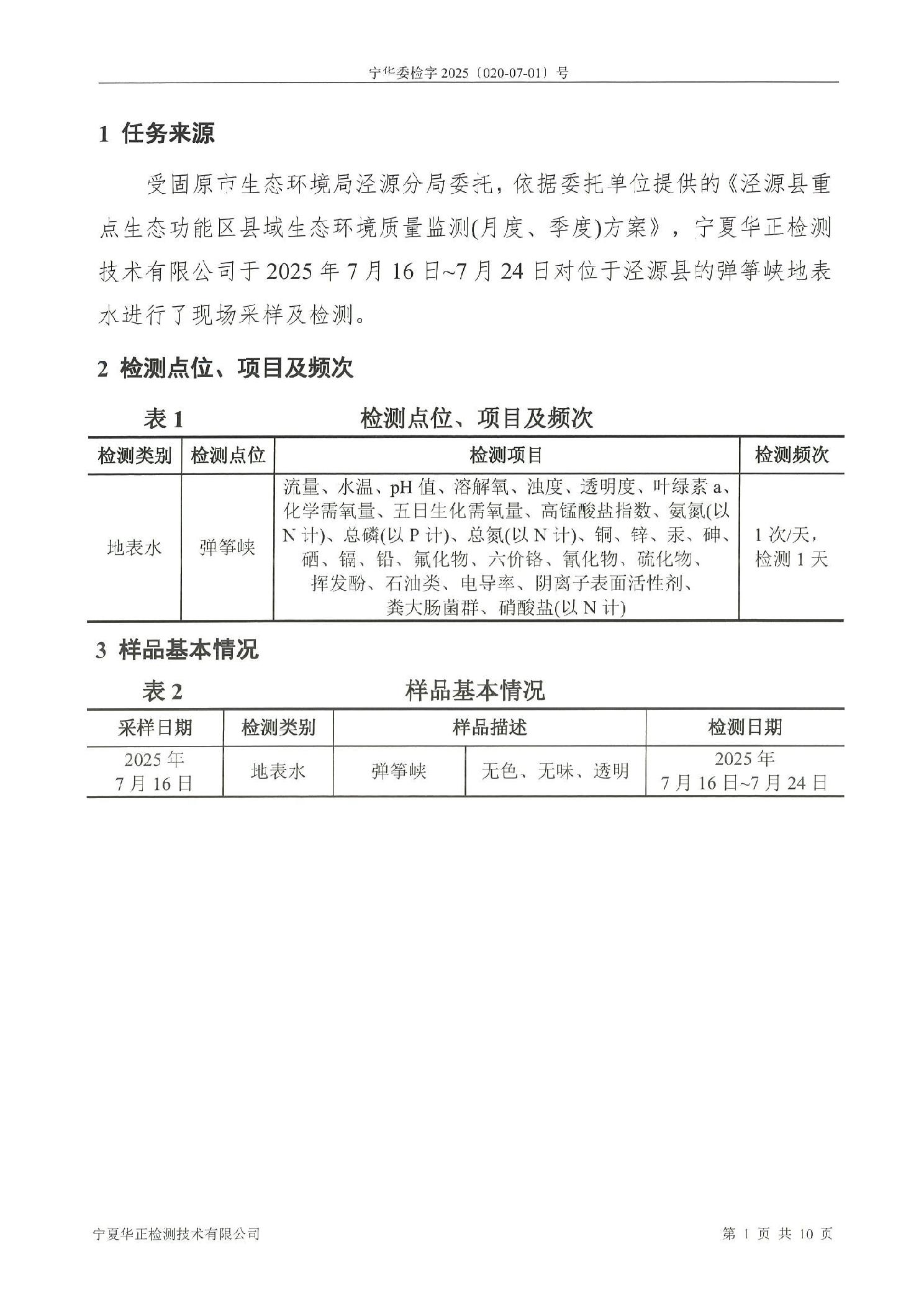 泾源县2025年7月份县域生态环境质量监测弹筝峡出境断面水质监测报告