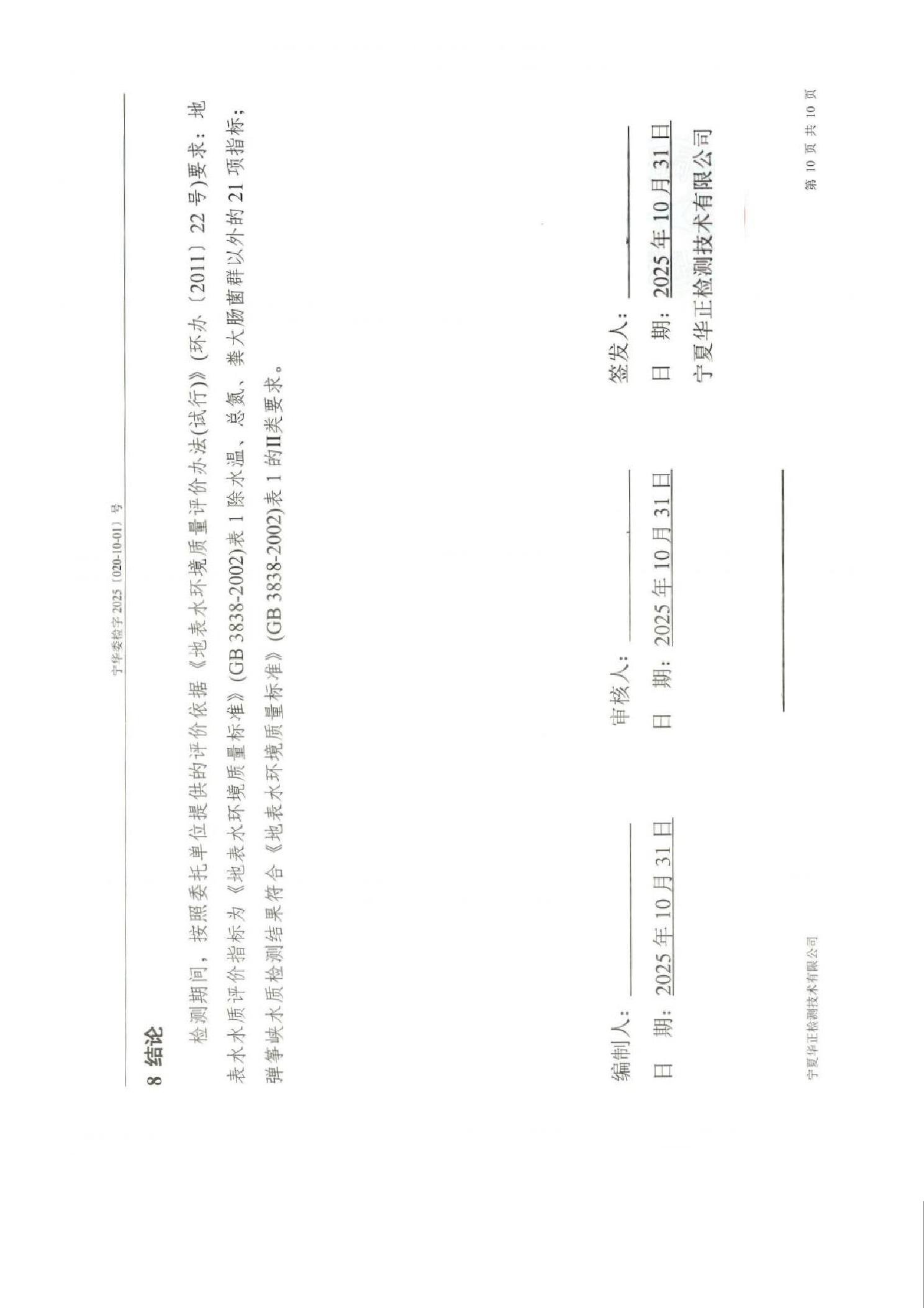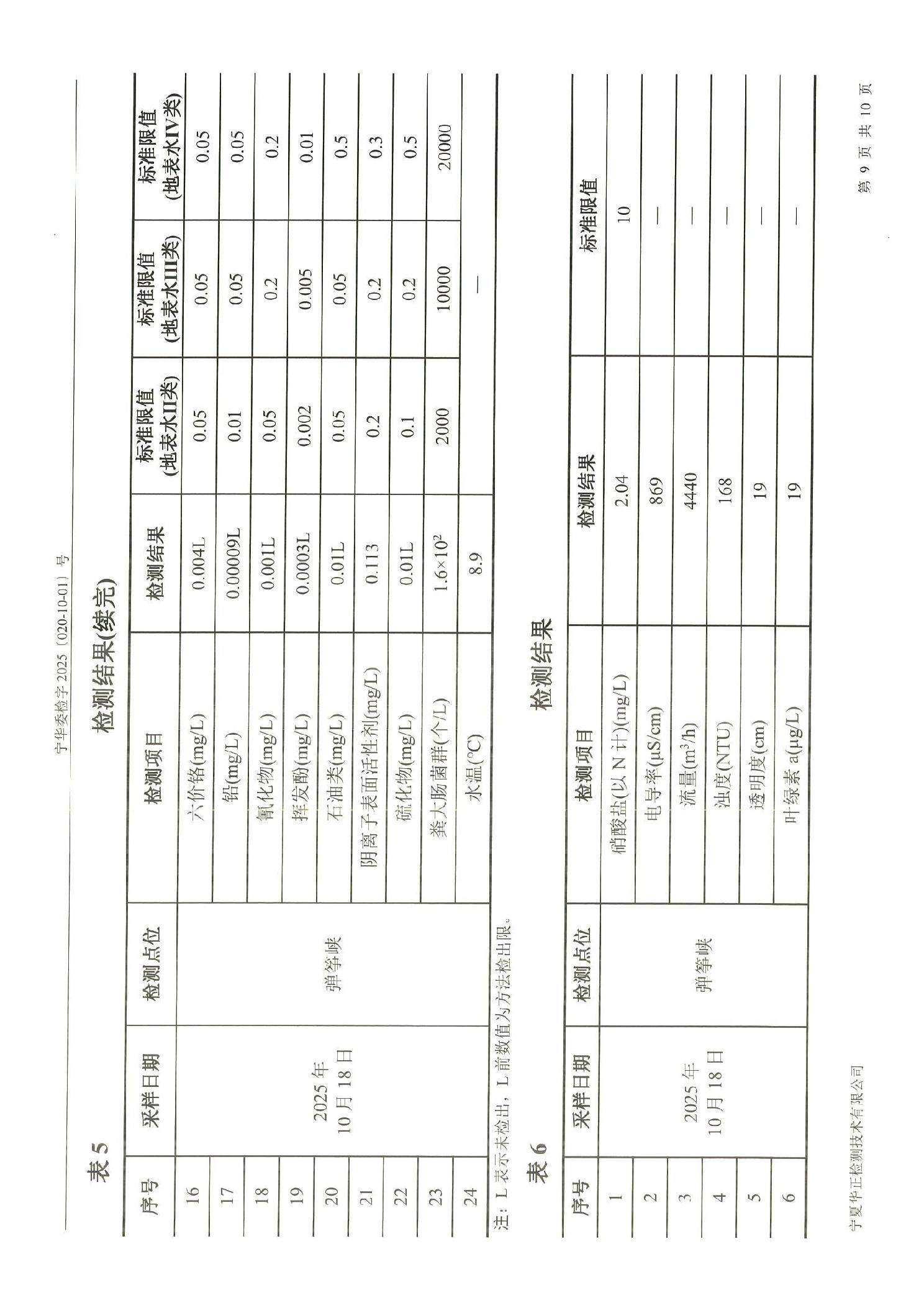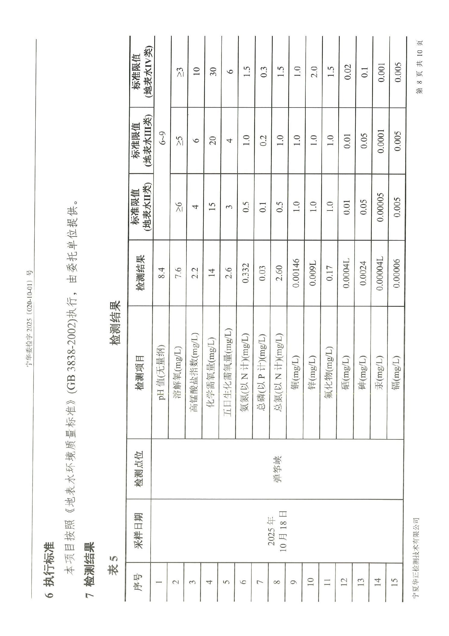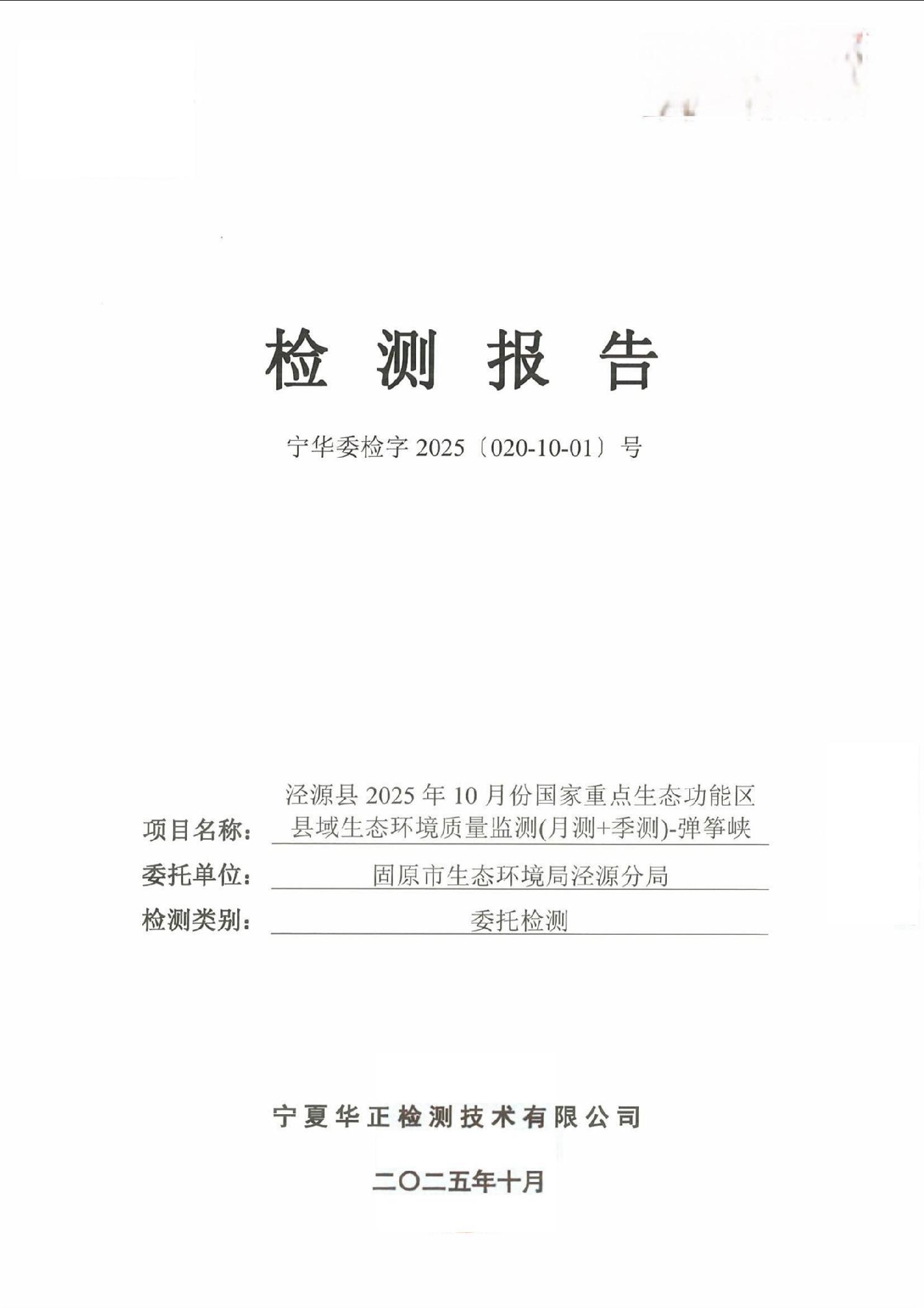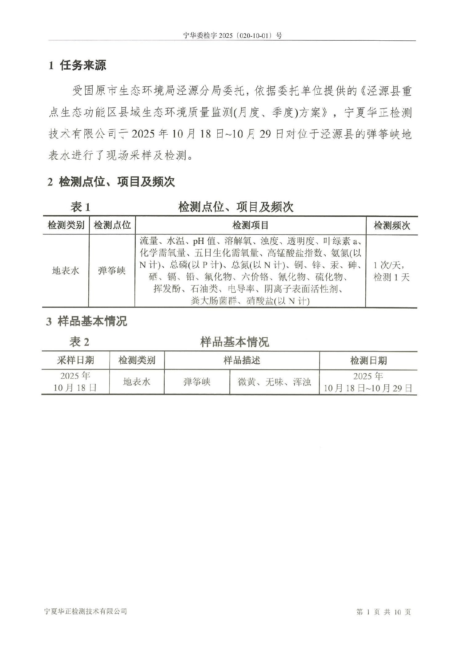 泾源县2025年10月份县域生态环境质量监测弹筝峡出境断面水质监测报告