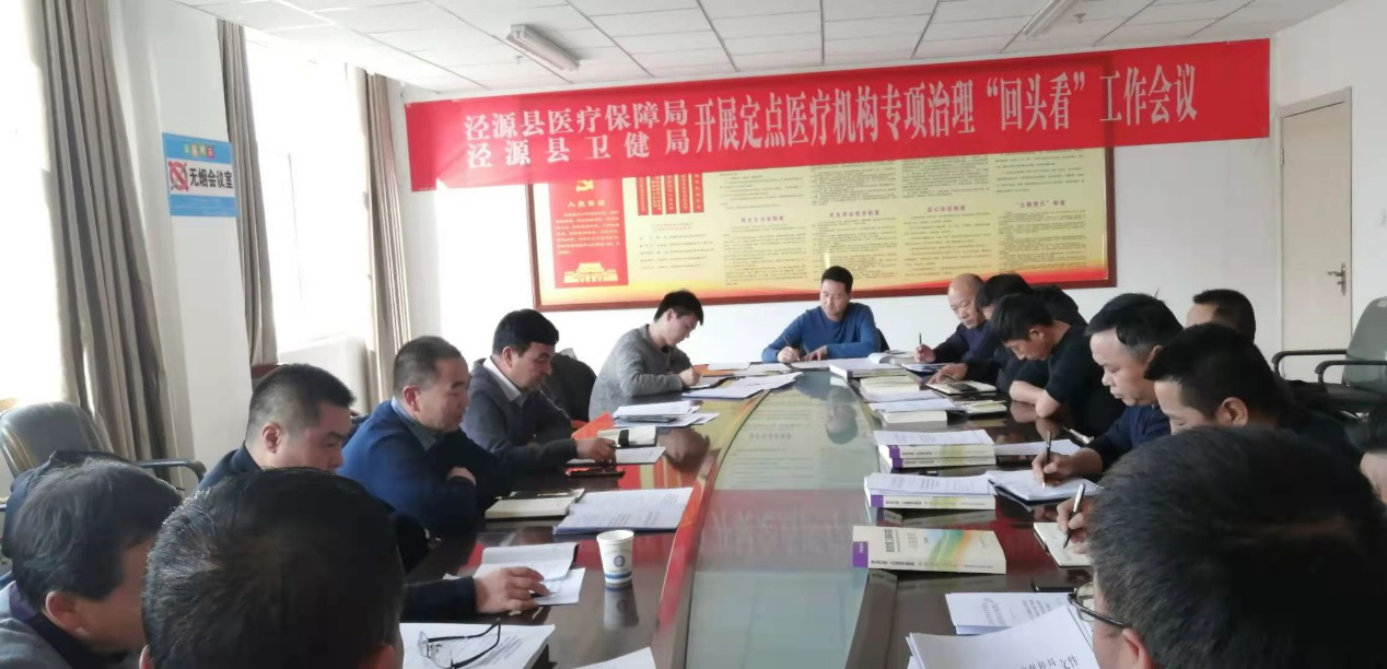 1月4日,泾源县召开定点医疗机构专项治理“回头看”工作会议,县医保局、卫健局主要负责人、县各定点医疗机构负责同志参加会议。