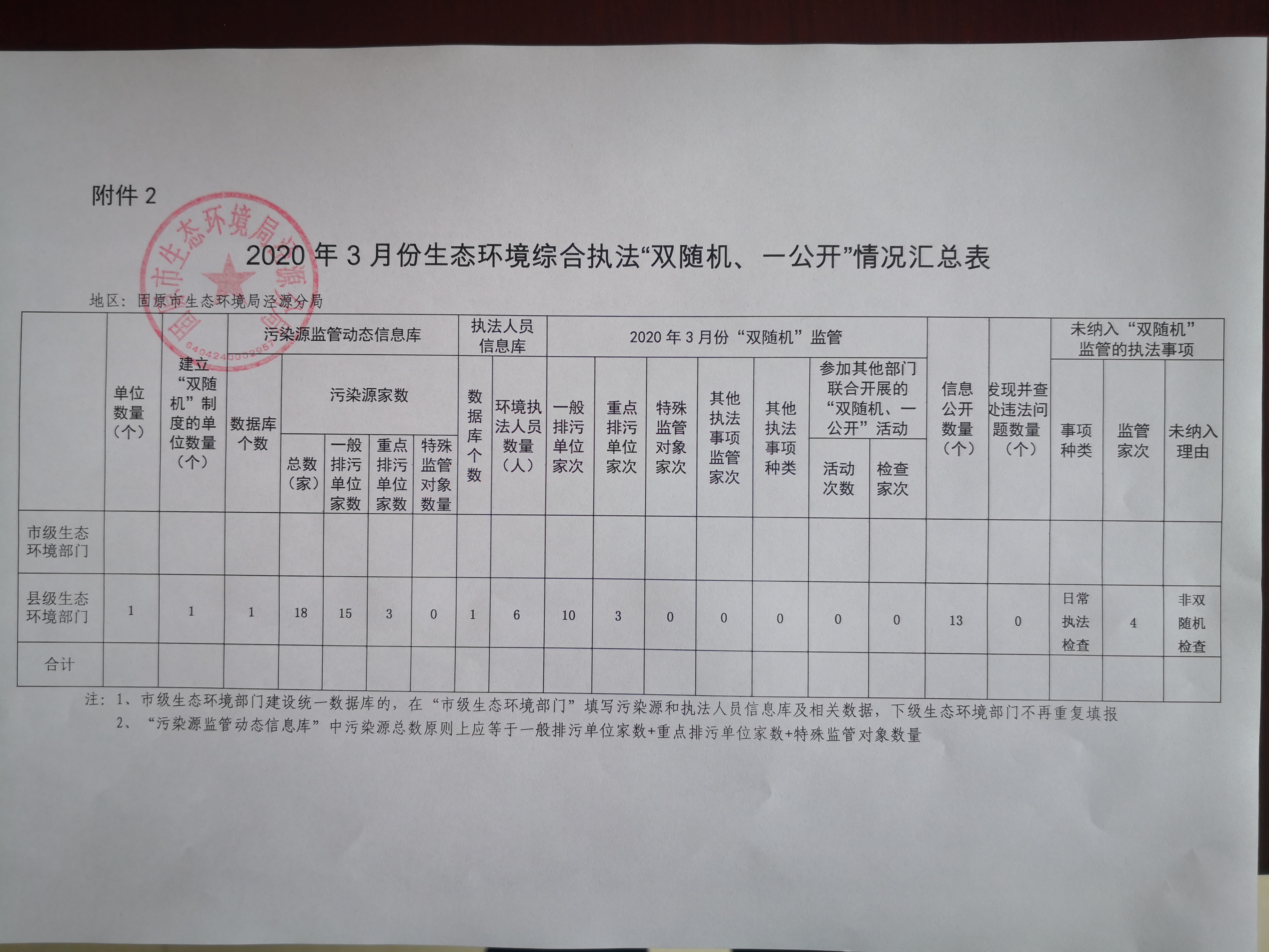 2020年3月份生态环境综合执法“双随机、一公开”情况
