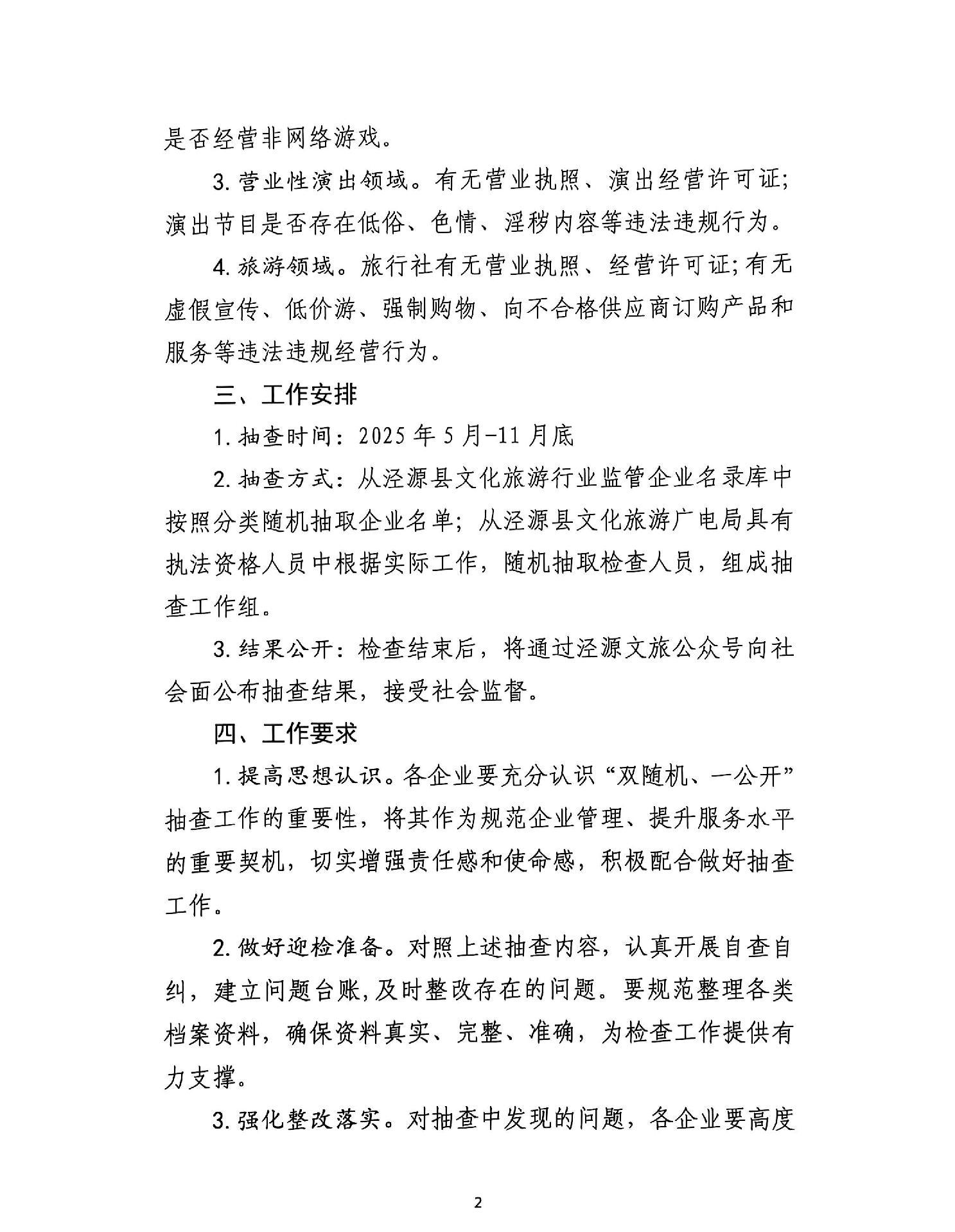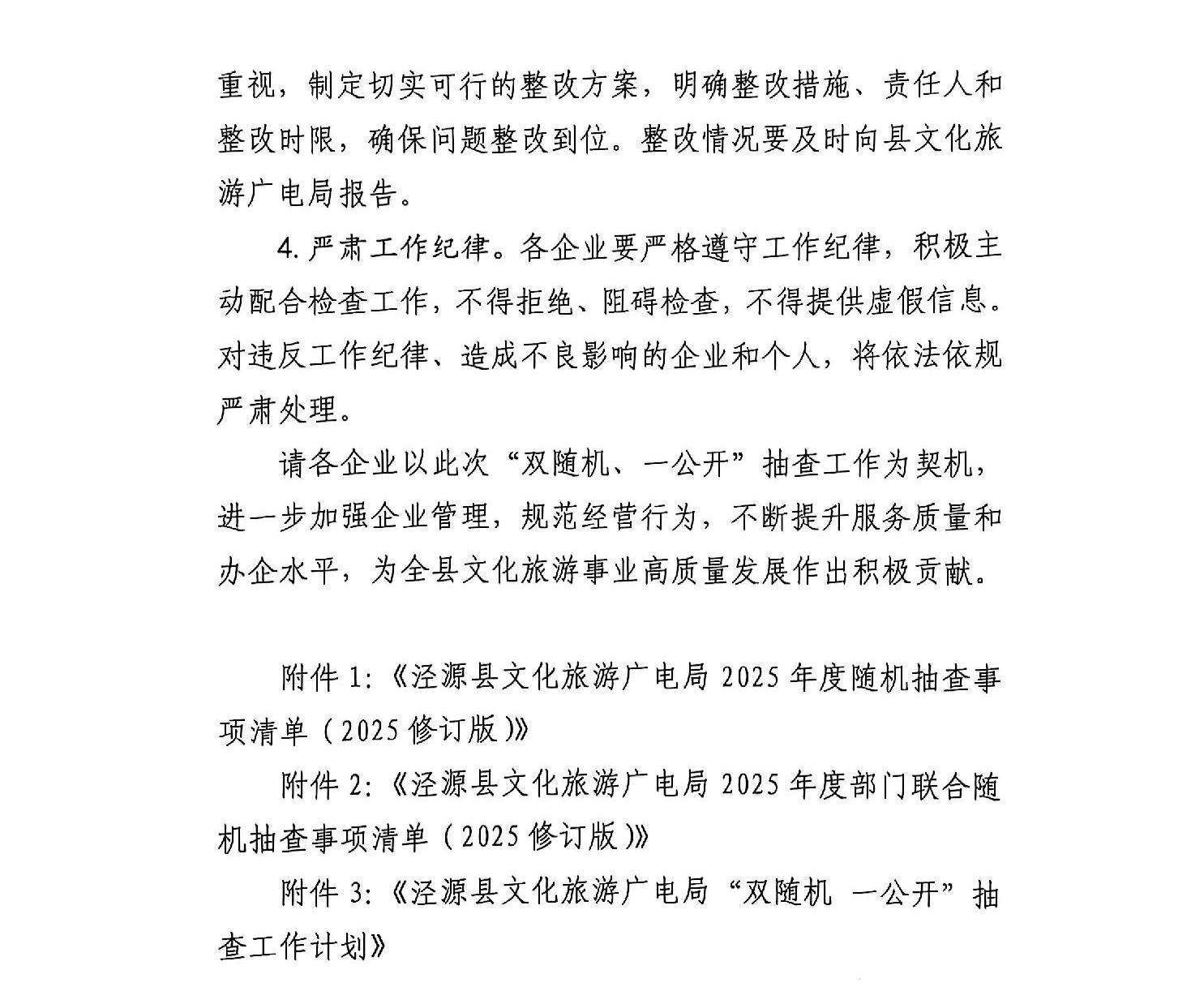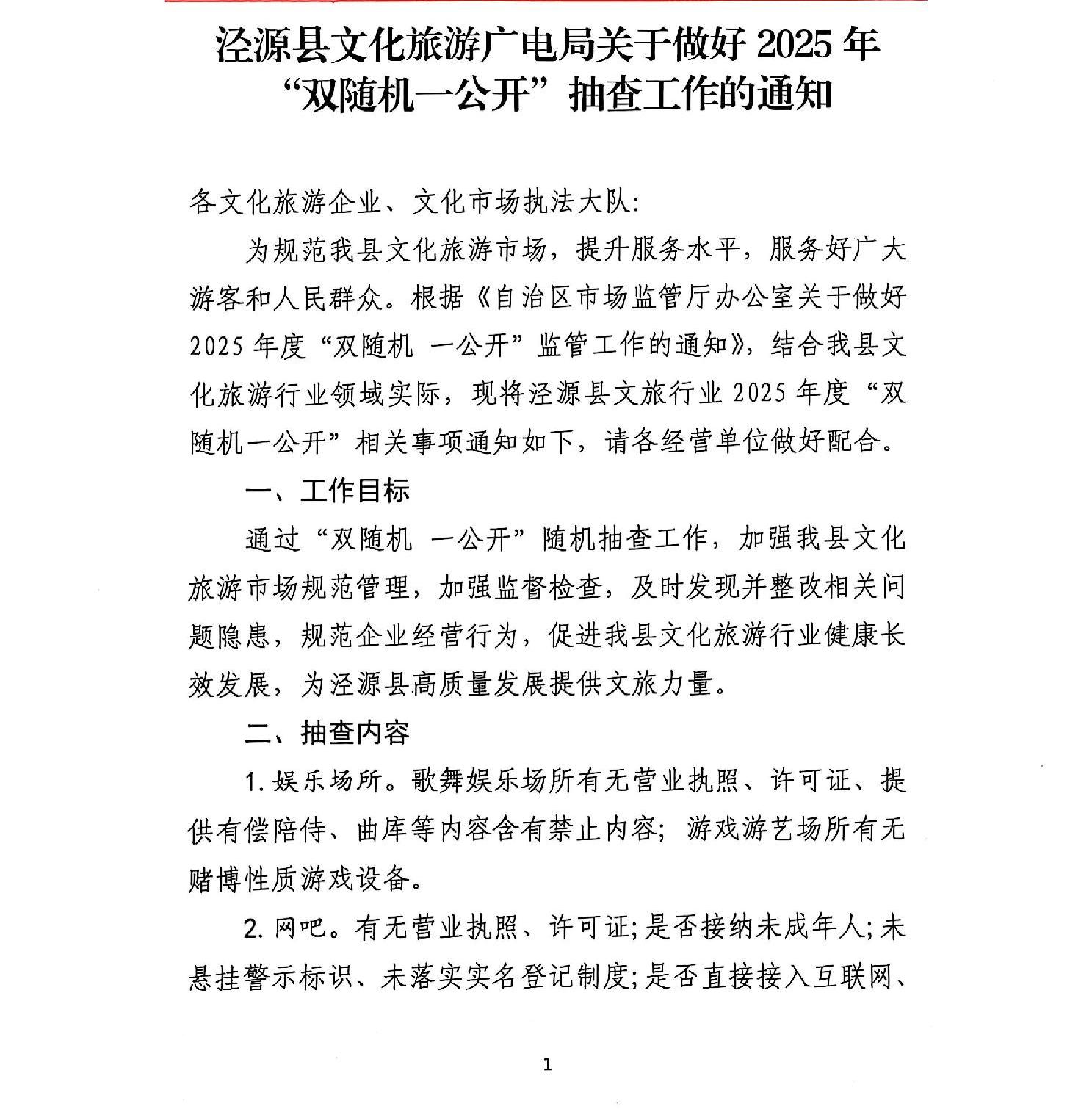 泾源县文化旅游广电局关于做好2025年“双随机、一公开”抽查工作的通知