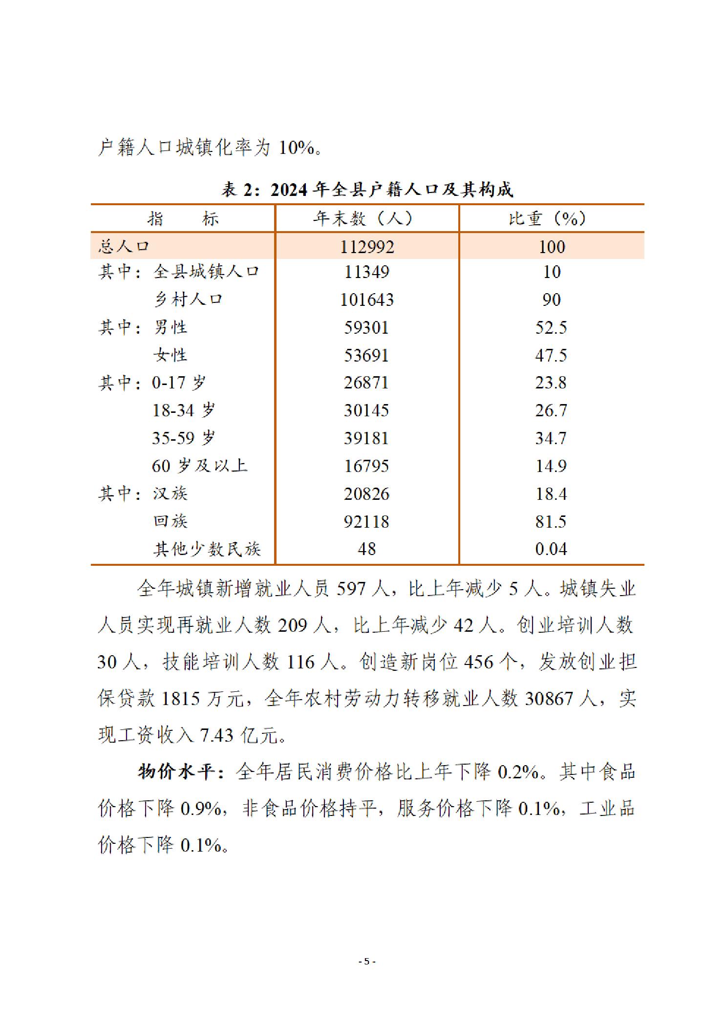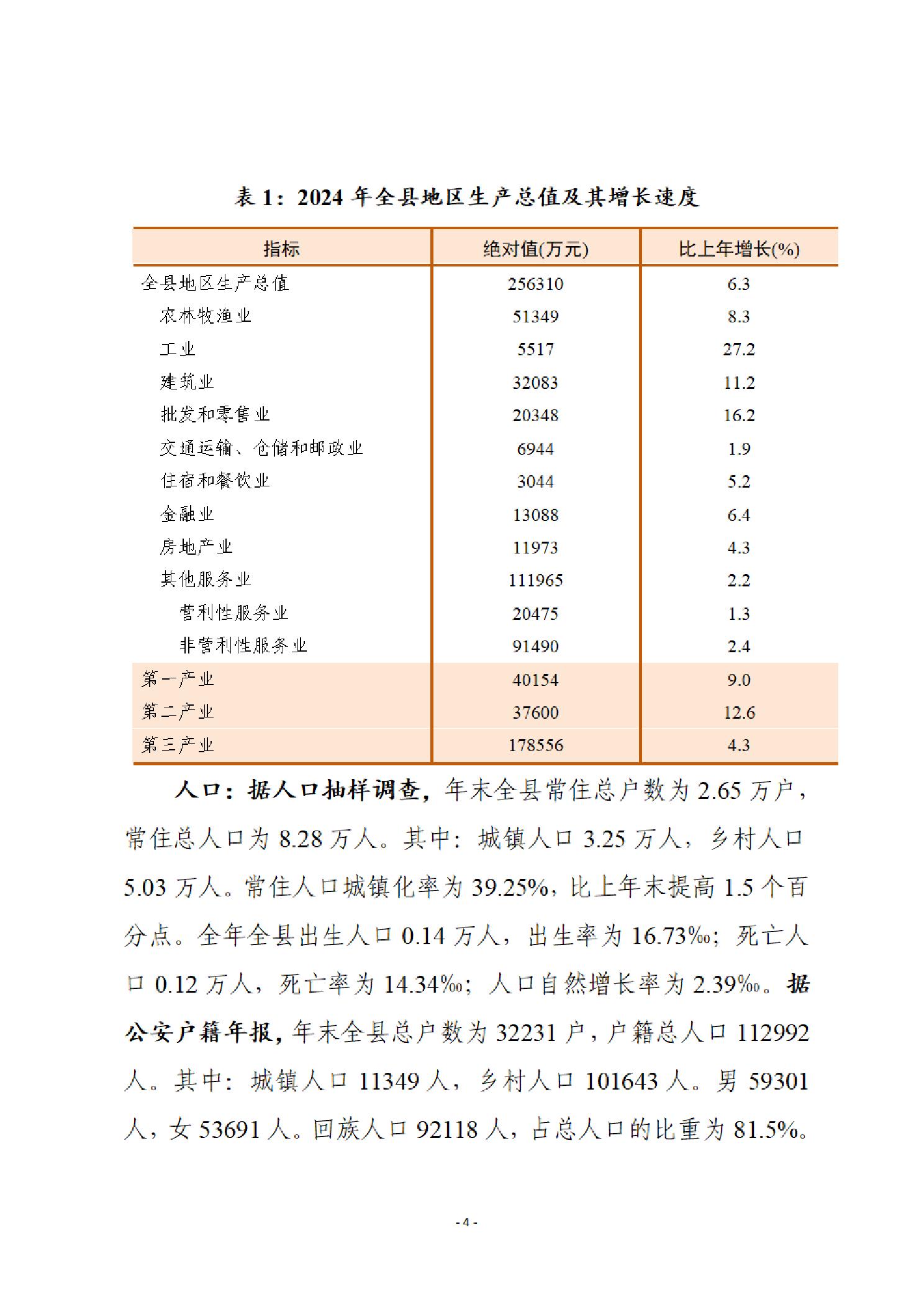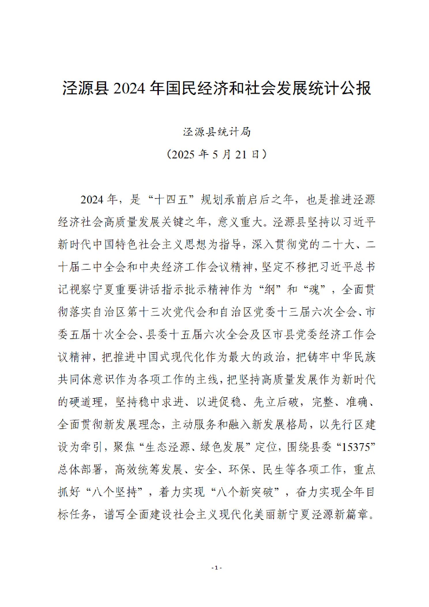 泾源县2024年国民经济和社会发展统计公报