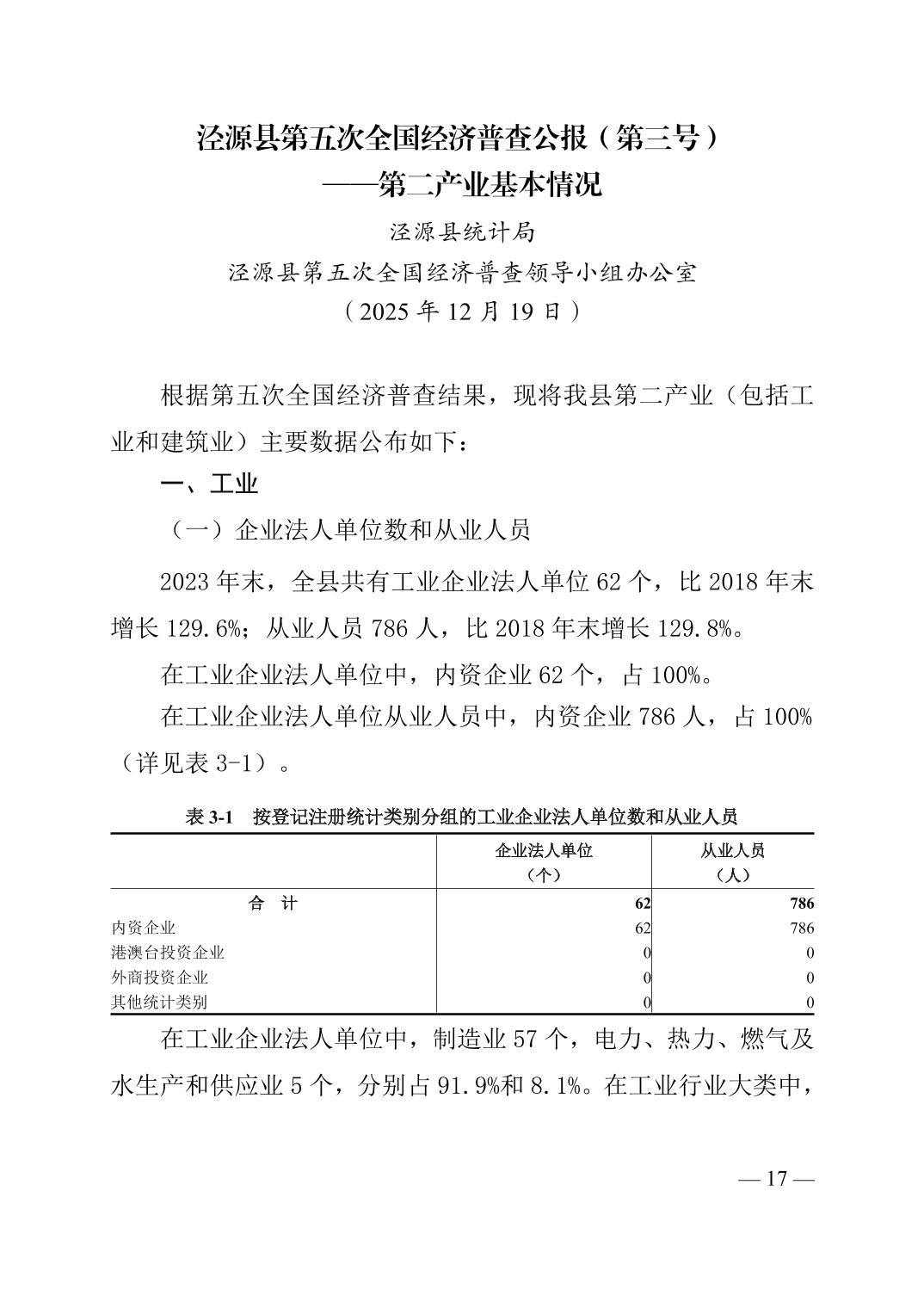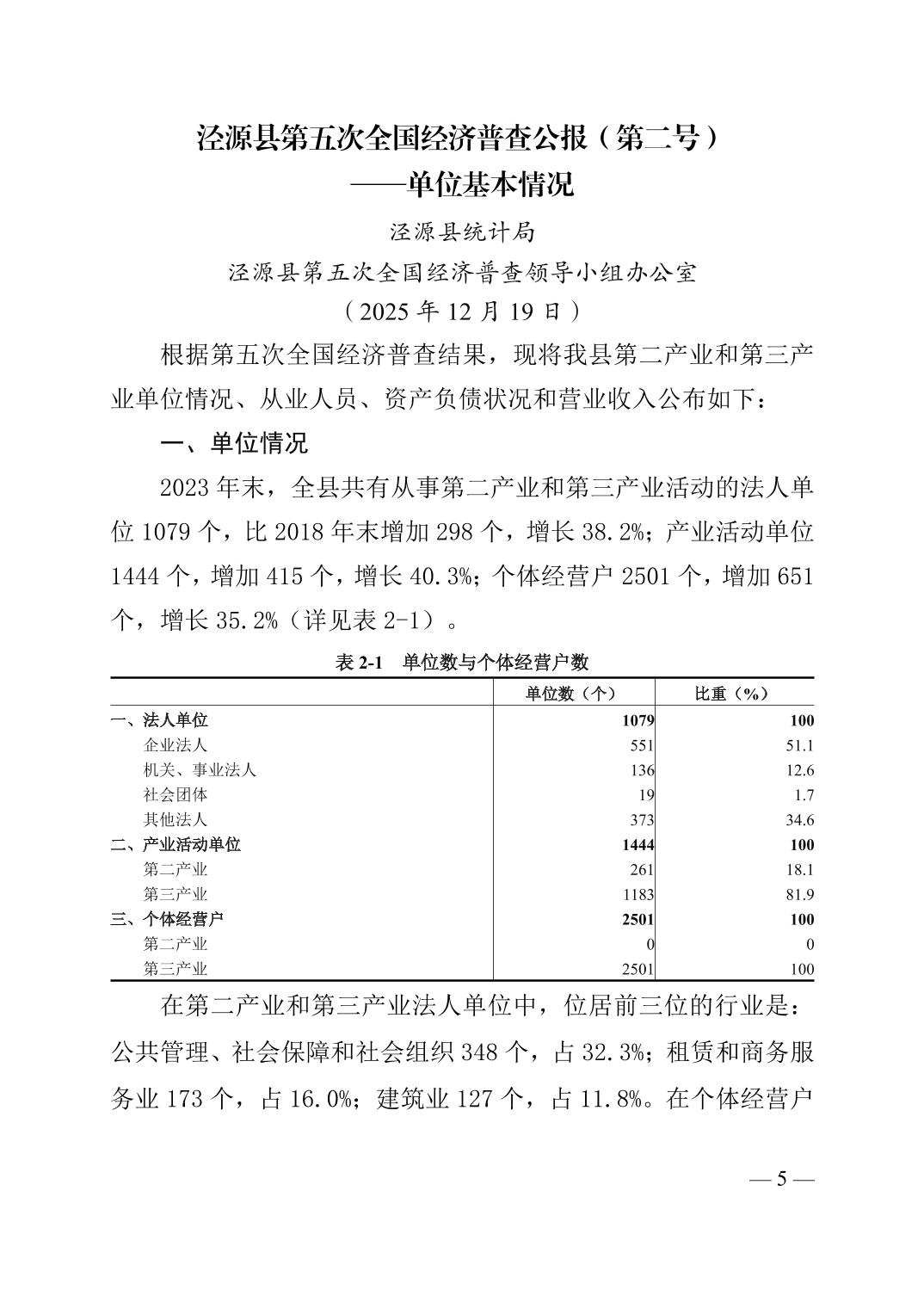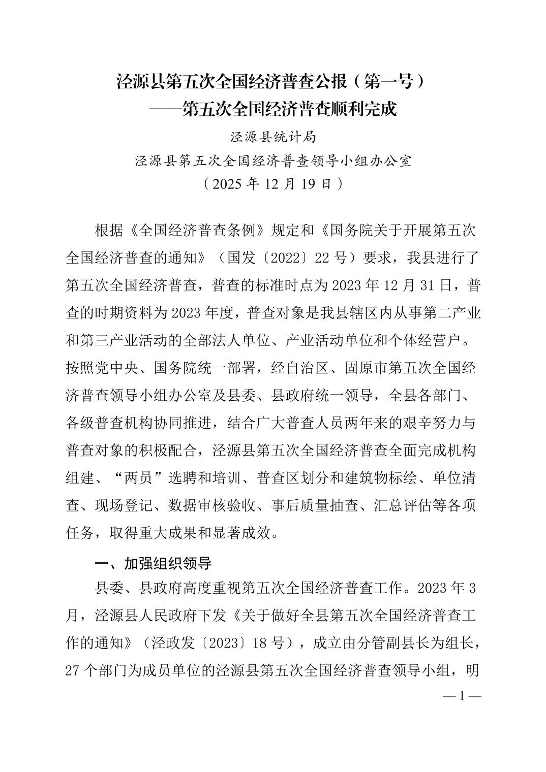 泾源县第五次全国经济普查公报