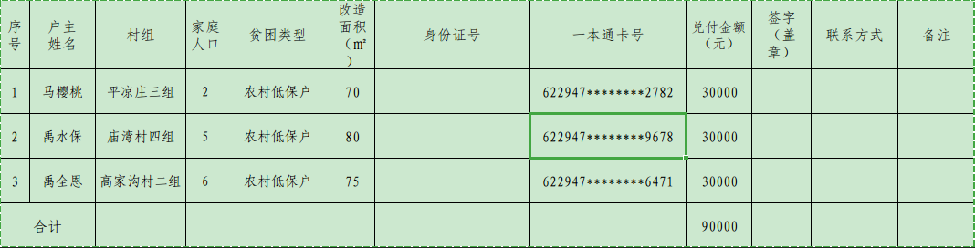 泾源县2023年农村低收入群体第二批危房改造资金兑付公示花名册
