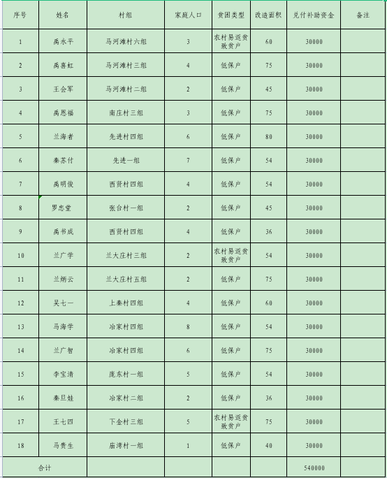 泾源县2024年农村危房改造资金兑付公示花名册(第一批)