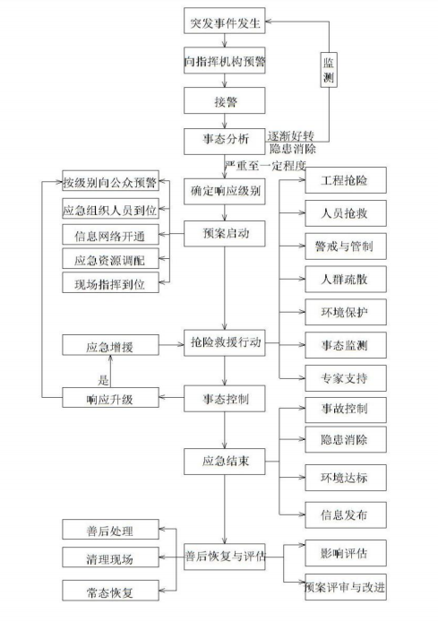 2、建立抢险救灾工作机制,确定抢险救灾方案主要包括人员组织、物资调拨、车辆调配和救护等;