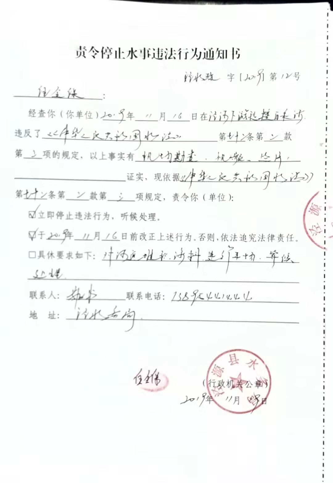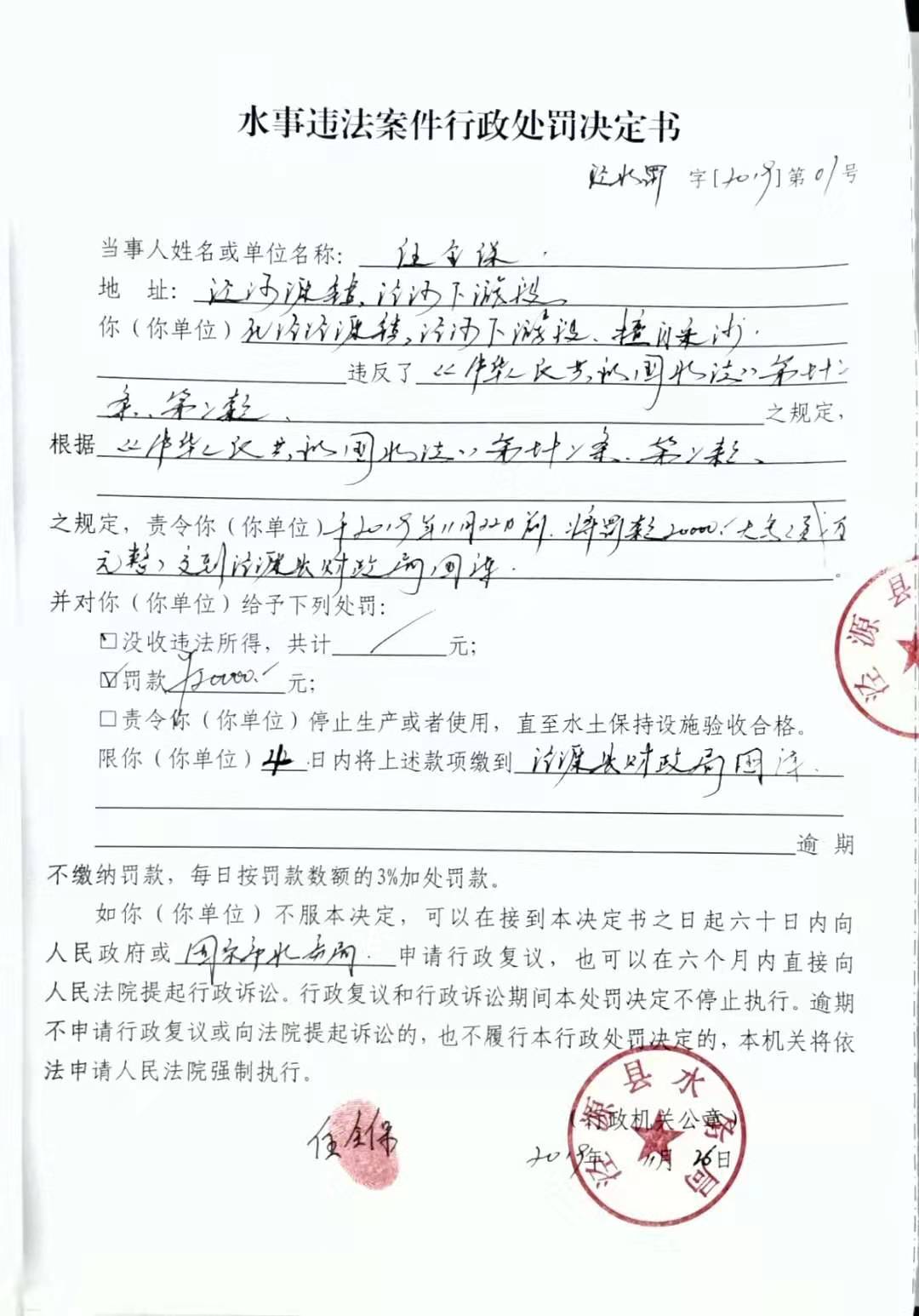 水事违法案件行政处罚决定书