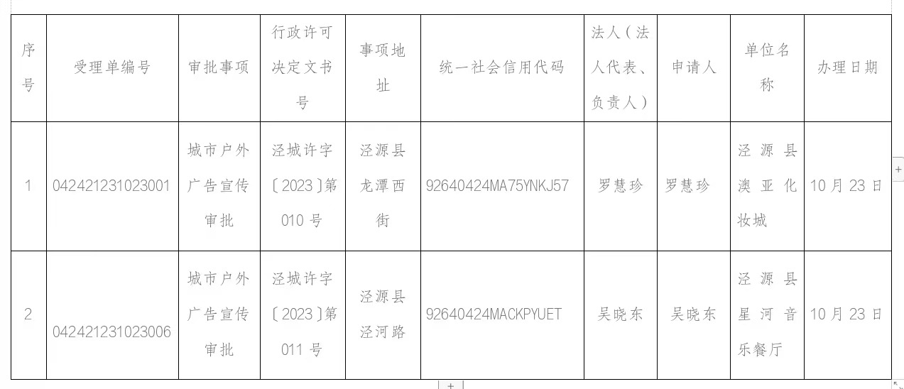 城市户外广告宣传设置审批公示