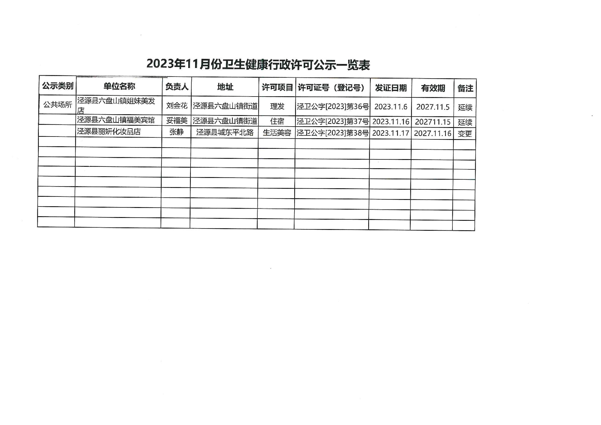 2023年11月卫生健康许可