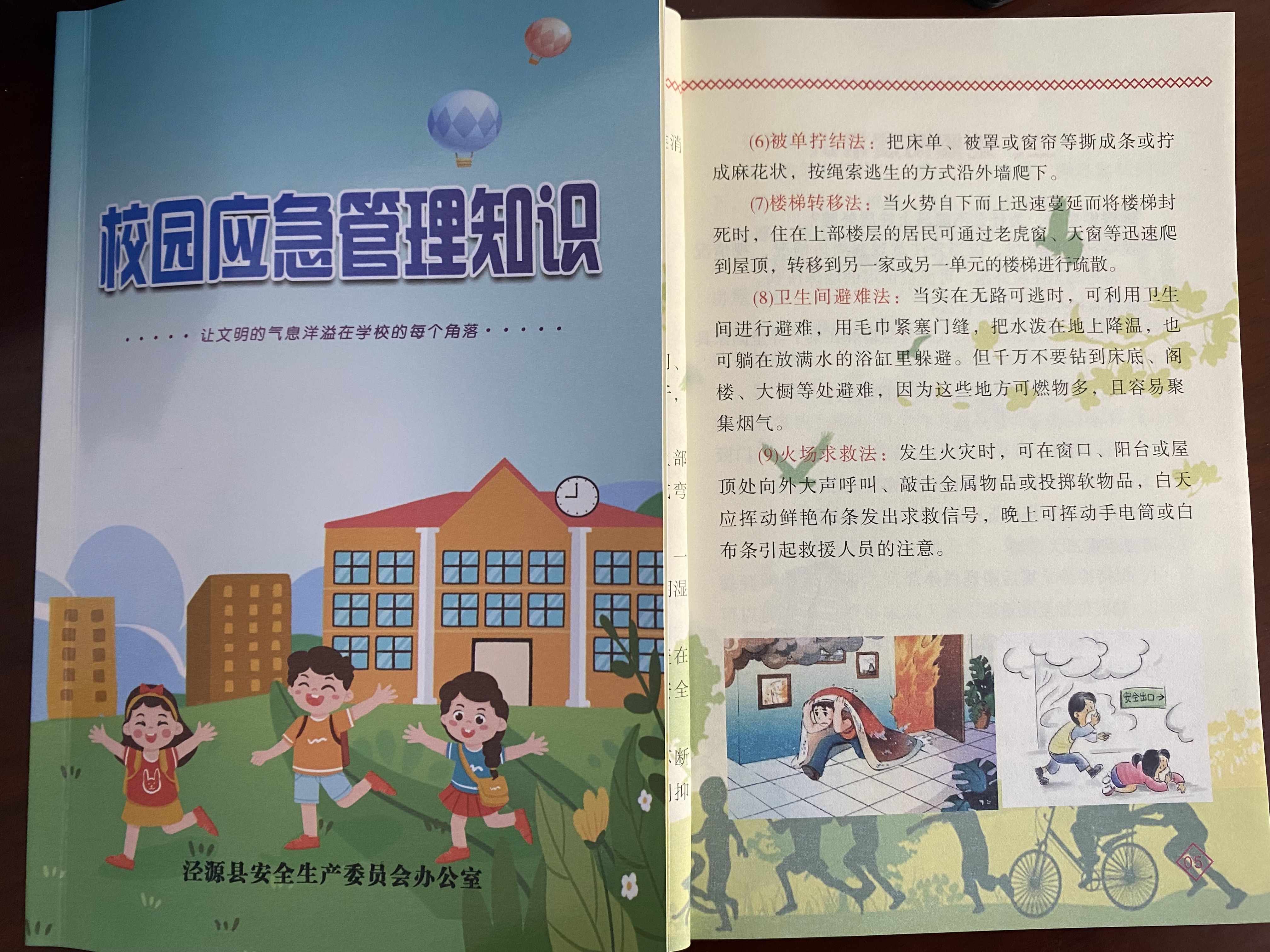 本次活动,县应急管理局印制并向全县各级各类学校分发《校园应急管理知识手册》15000余册,手册内容图文并茂,系 统性地讲解了火灾常识、地震防震常识、用电安全、交通安全常识、抗寒以及如何应对雷雨天气等各类校园应急管理安全常识。该手册采取宣传彩页和笔记本相结合的印制方式,宣传内容直观明了、通俗易懂,实用性强并且贴合校园实际、贴近师生生活,集趣味性、实用性、科学性于一体。通过教育一个学生、引导一个家庭的方式,让同学们将应急管理知识手册带回家,与父母共同学习,以学校带动家庭,以家庭带动社会,通过他们来教育引导周边亲人和群众,增强对于安全生产、应急管理工作的了解和支持。