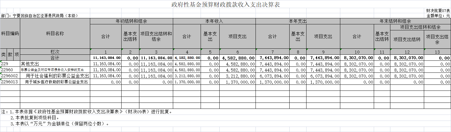 无政府性基金预算财政拨款单位:泾源县民政局2019年无政府性基金预算财政拨款收支。