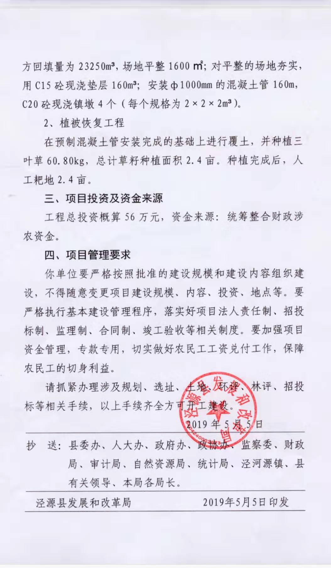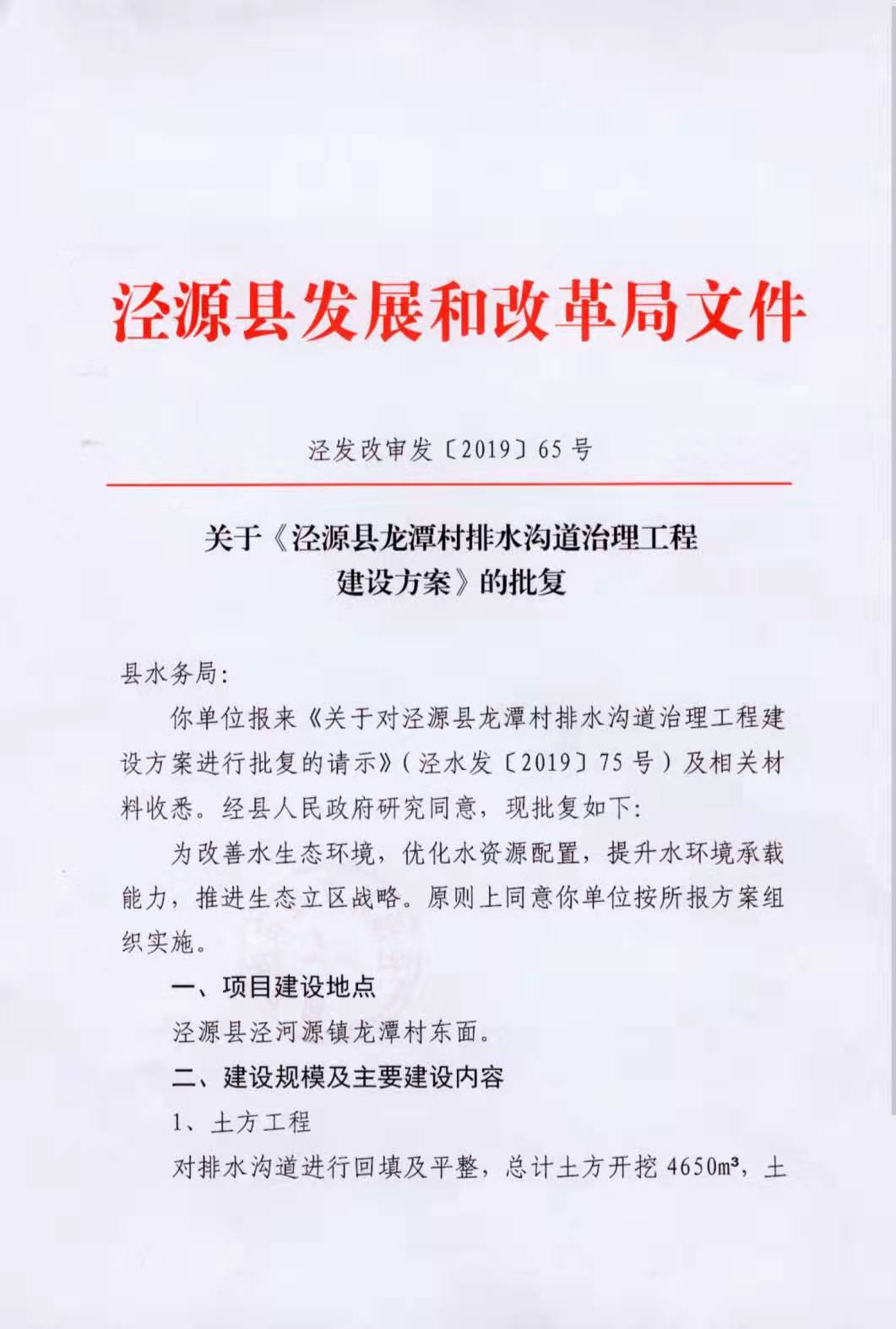 关于《泾源县龙潭村排水沟道治理工程建设方案》的批复