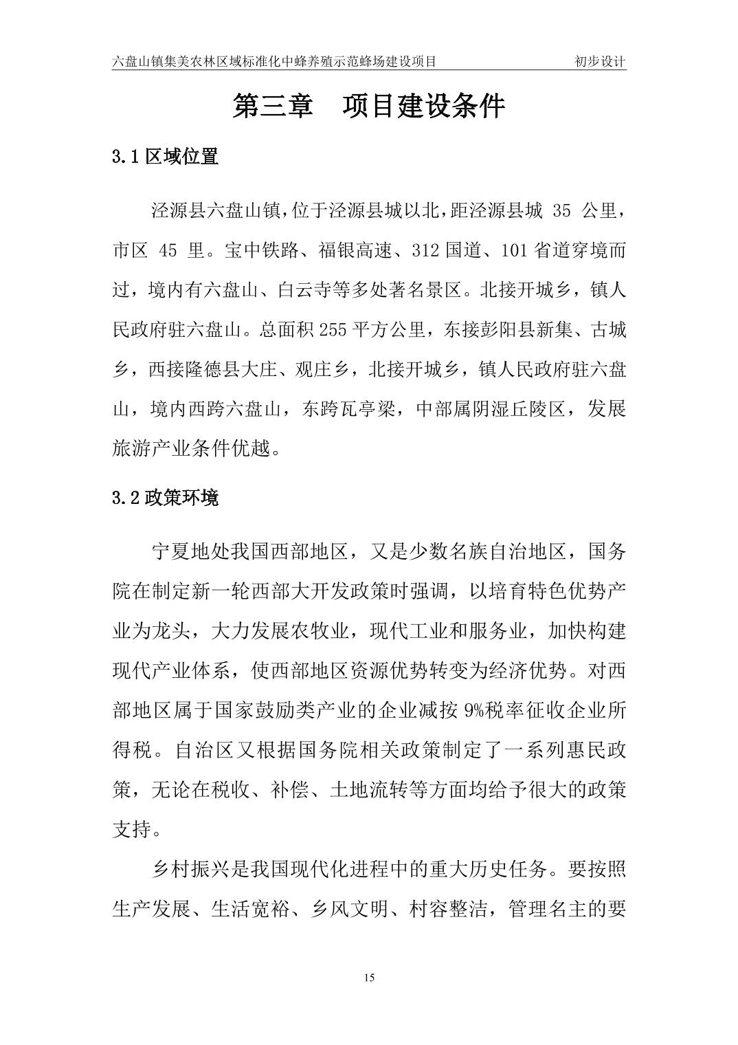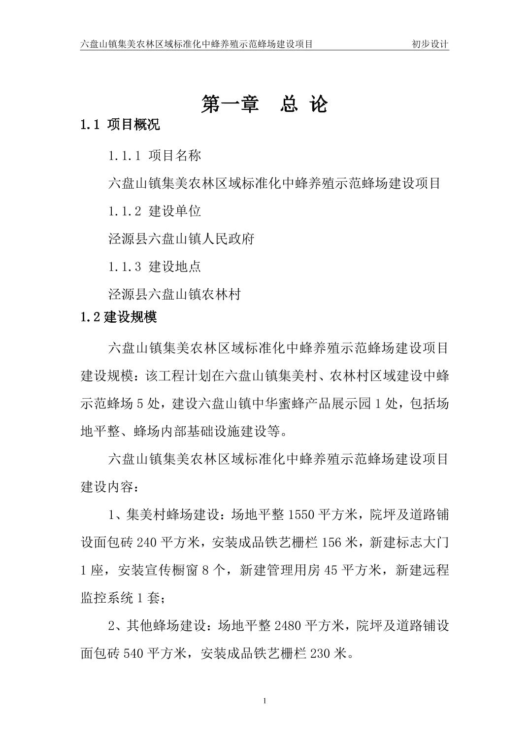 六盘山镇集美农林区域标准化中蜂养殖示范蜂场建设项目初步设计