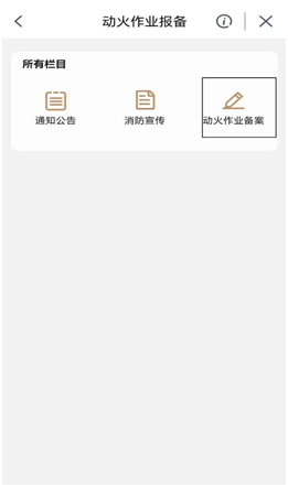 第五步进入“动火作业备案”,然后点击“动火工程报备”