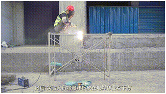 3.紧接着实验人员拿来纸箱放在电焊作业点下方开始电焊作业后大量高温焊渣直接掉落在纸箱上并迅速引燃 ;