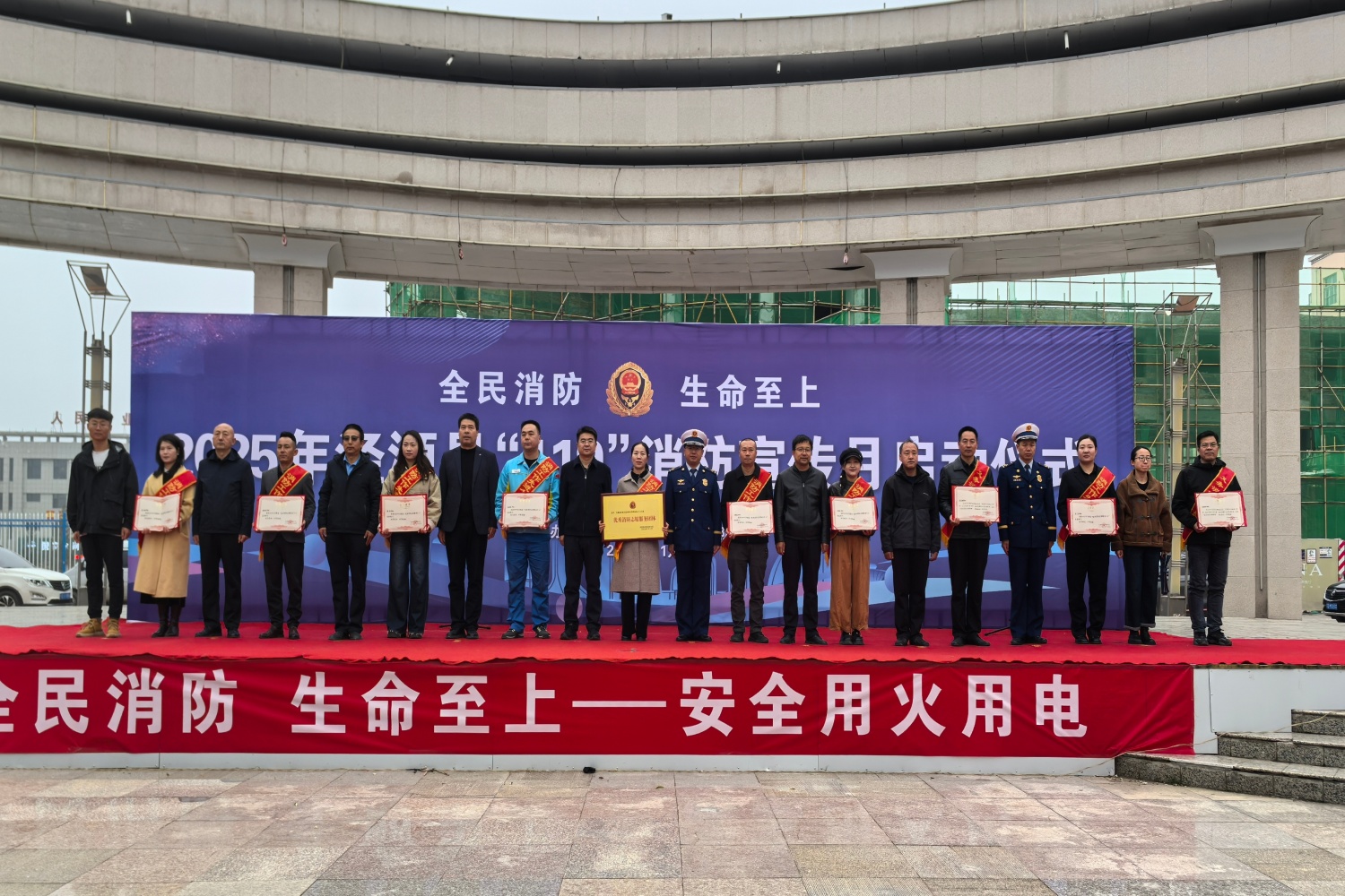 仪式上,为获得表彰的全县“优秀消防金牌讲师”“优秀消防志愿服务团体”“优秀消防志愿服务个人”颁发了荣誉证书。