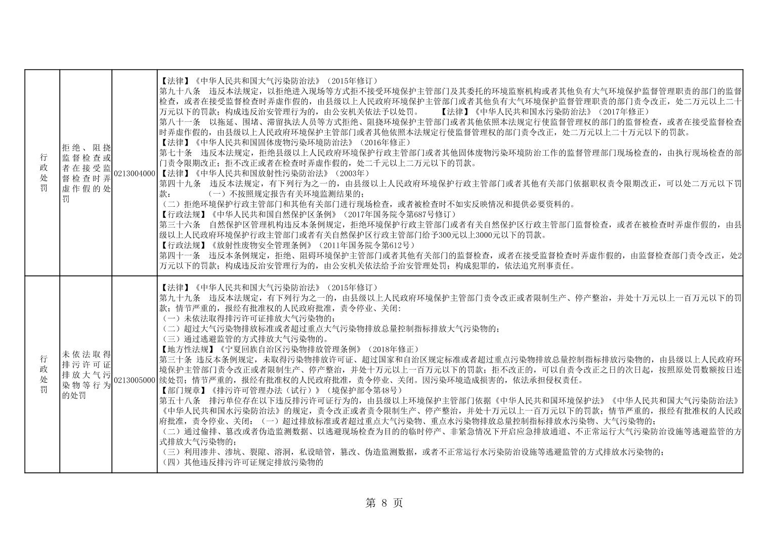 固原市生态环境局泾源分局权责清单