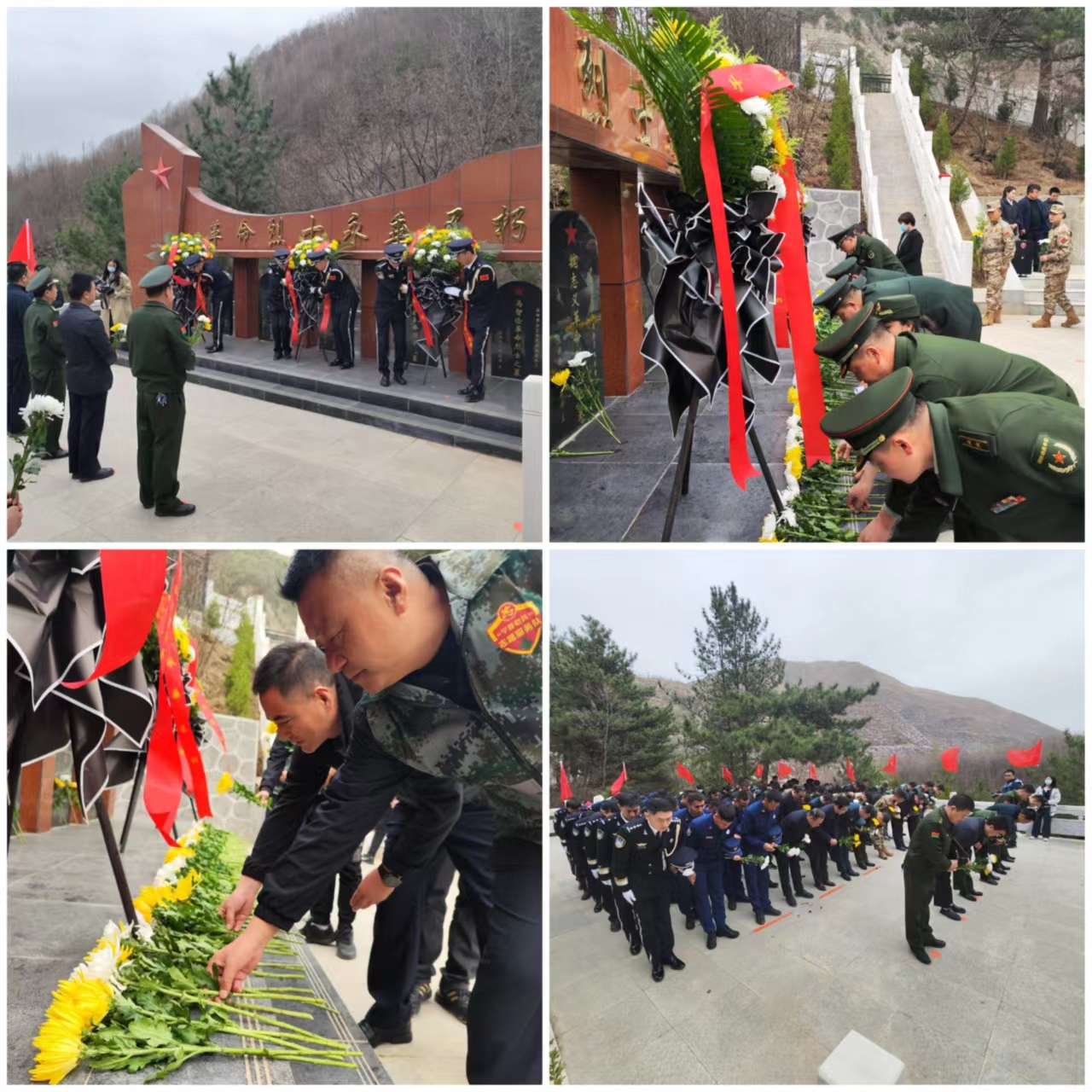 缅怀先烈,传承红色基因。随着庄严国歌的响起,祭英烈活动正式开始。在巍然耸立的革命烈士纪念碑前,全体人员整齐列队,静默肃立。默哀完毕后,礼兵向人民英雄敬献花篮,随后同志们怀着无限崇敬的心情,有序向长眠于此的先烈敬献鲜花、鞠躬默哀。讲解员向参加活动人员讲解了革命前辈抛头颅洒热血的英雄事迹和红色革命故事,并介绍了烈士纪念设施的基本情况。英烈精神如永不熄灭的火炬,指引我们砥砺前行。山河无恙、誓言无声,今天,我们用最盛大的礼仪来纪念烈士,用最庄严的仪式来祭奠烈士,深切表达自己的深切哀思和崇高敬意。