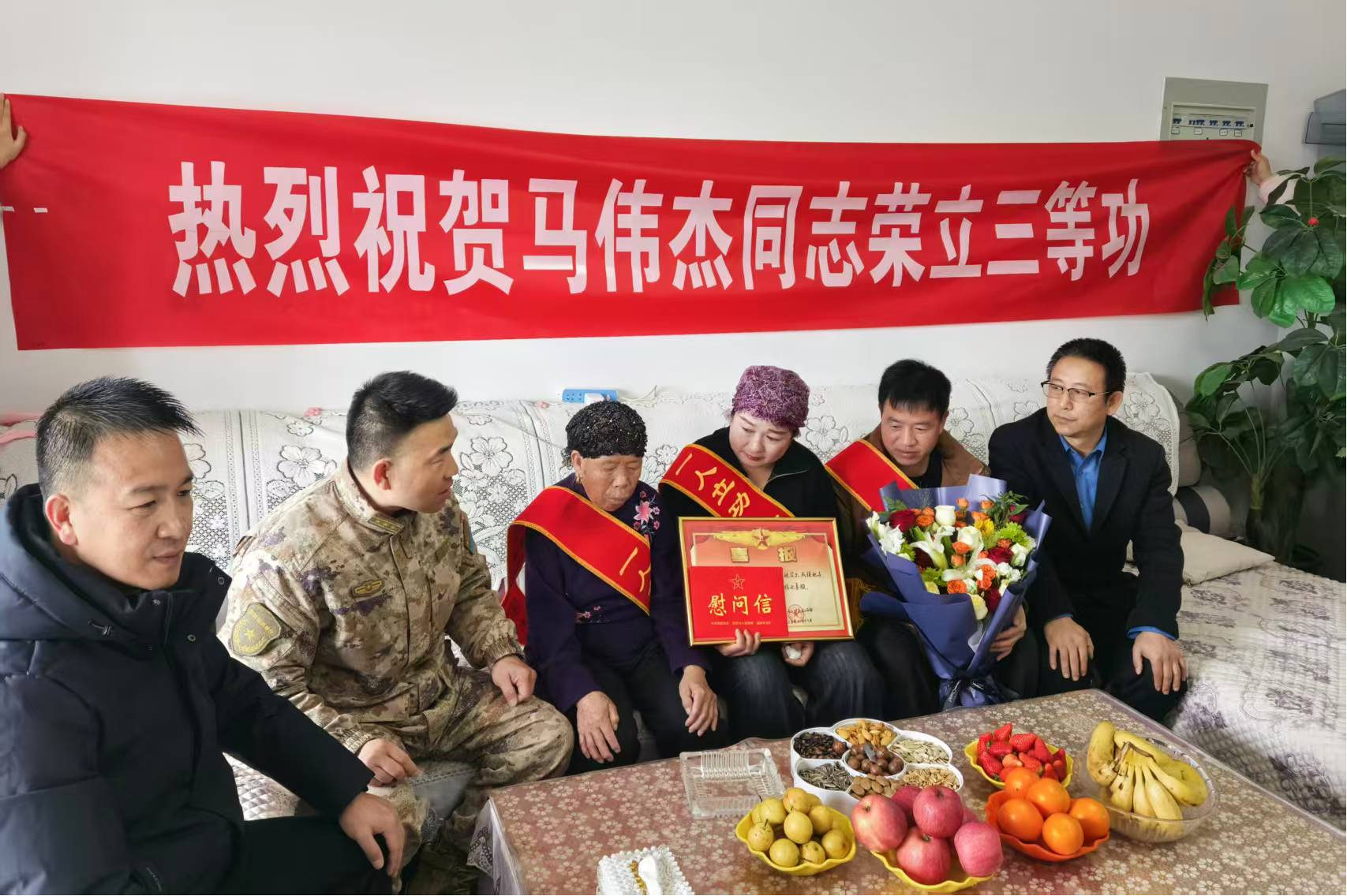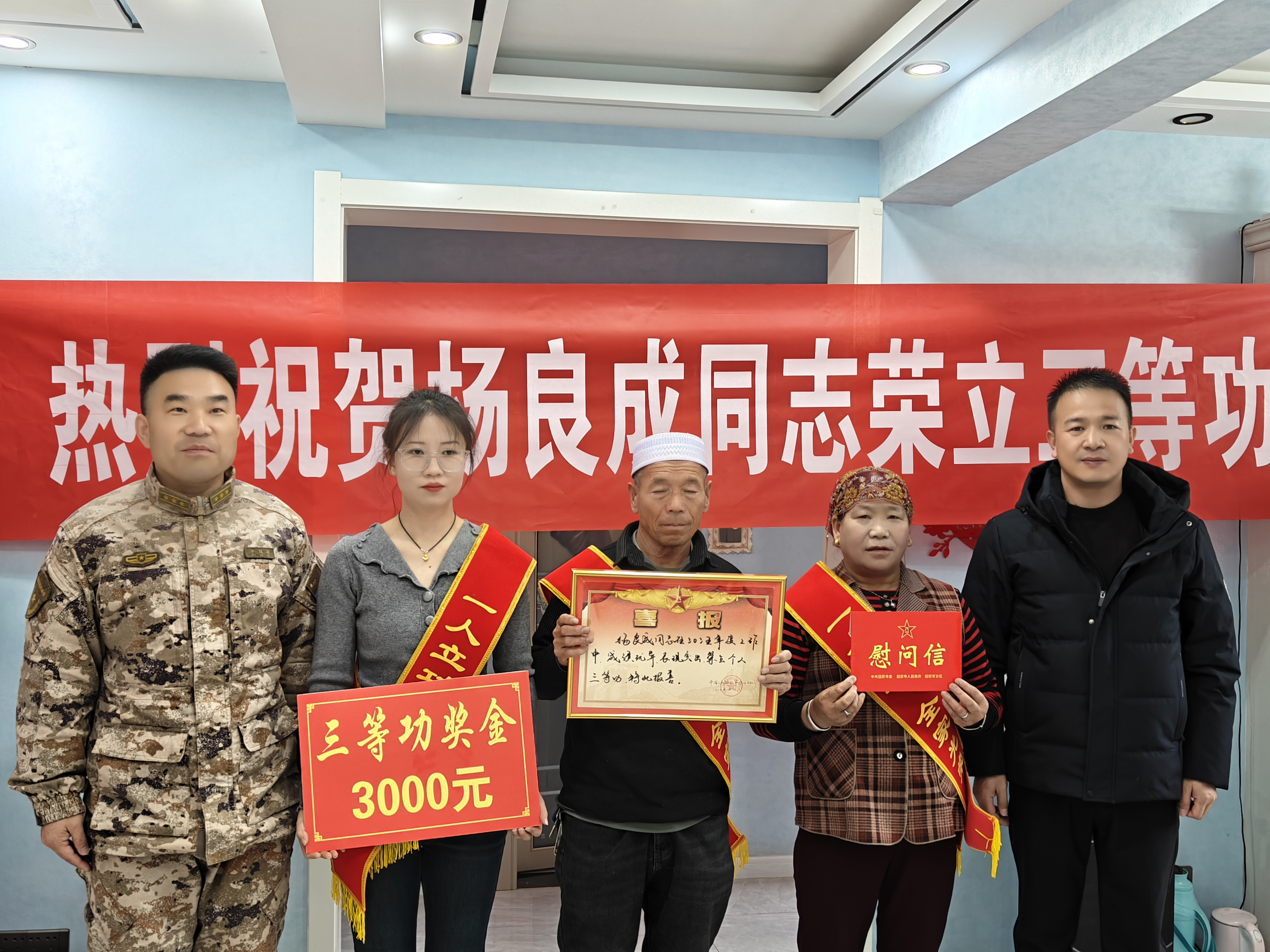 进一步弘扬拥政爱民、拥军优属光荣传统,切实增强军人军属的荣誉感和自豪感,营造“一人立功、全家光荣”的浓厚社会氛围,近日,泾源县民政和退役军人事务局联合县人民武装部、各乡镇退役军人服务站,为8名在部队荣立三等功的现役军人家庭送去了立功喜报和奖励金。