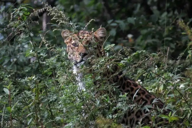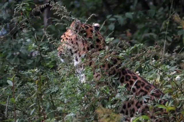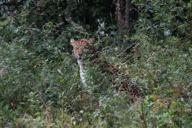 据了解,宁夏固原市六盘山国家级自然保护区大约有35只金钱豹,这是工作人员首次近距离拍摄到金钱豹影像。固原市六盘山林业局二龙河国有林场副场长于继辉、六盘山林业局专业扑火队副队长丁志宏在六盘山国家级自然保护区勘测扑火队员训练路线时,发现了一只隐藏在草丛里的金钱豹,拍摄距离不到10米。