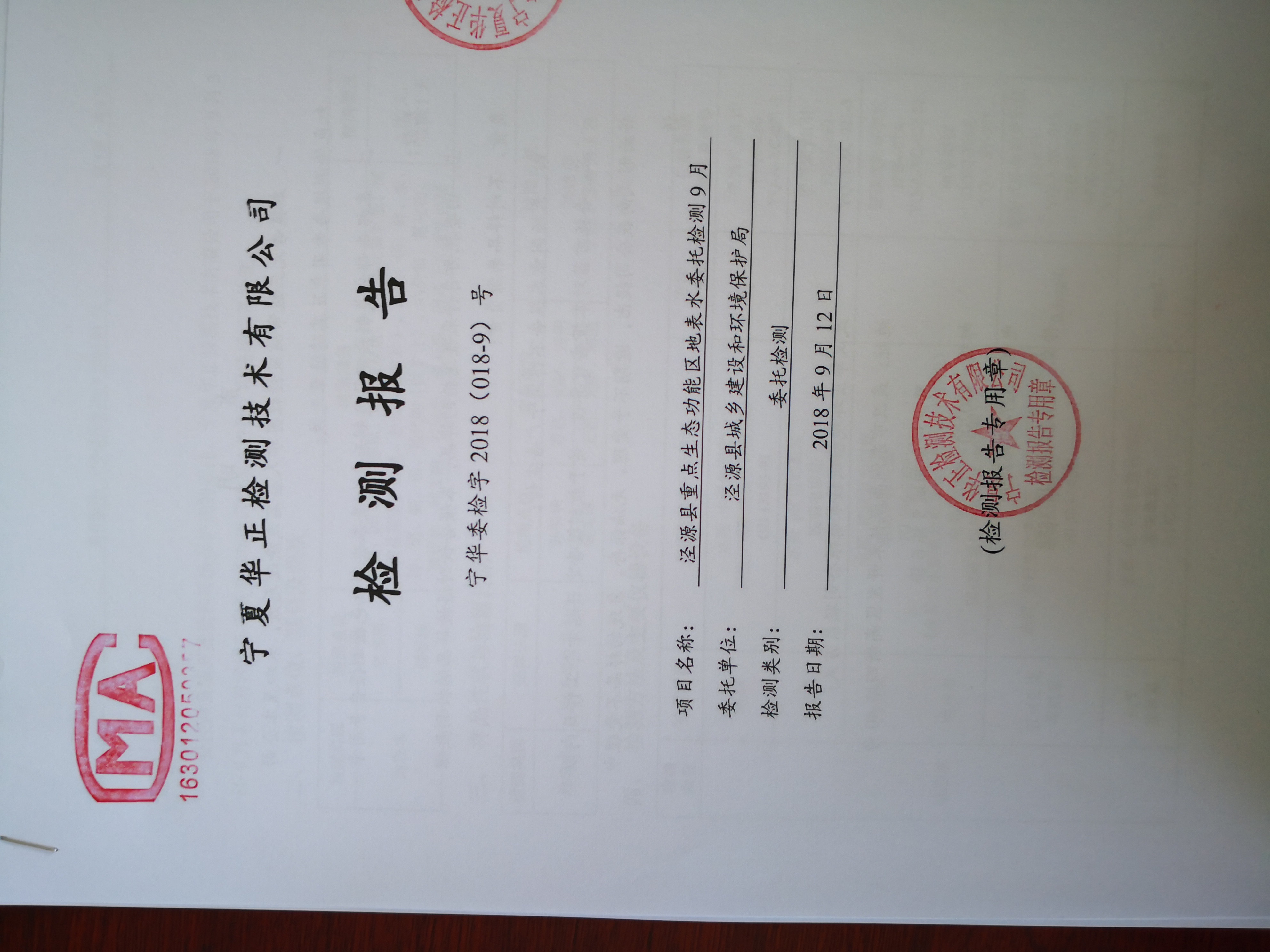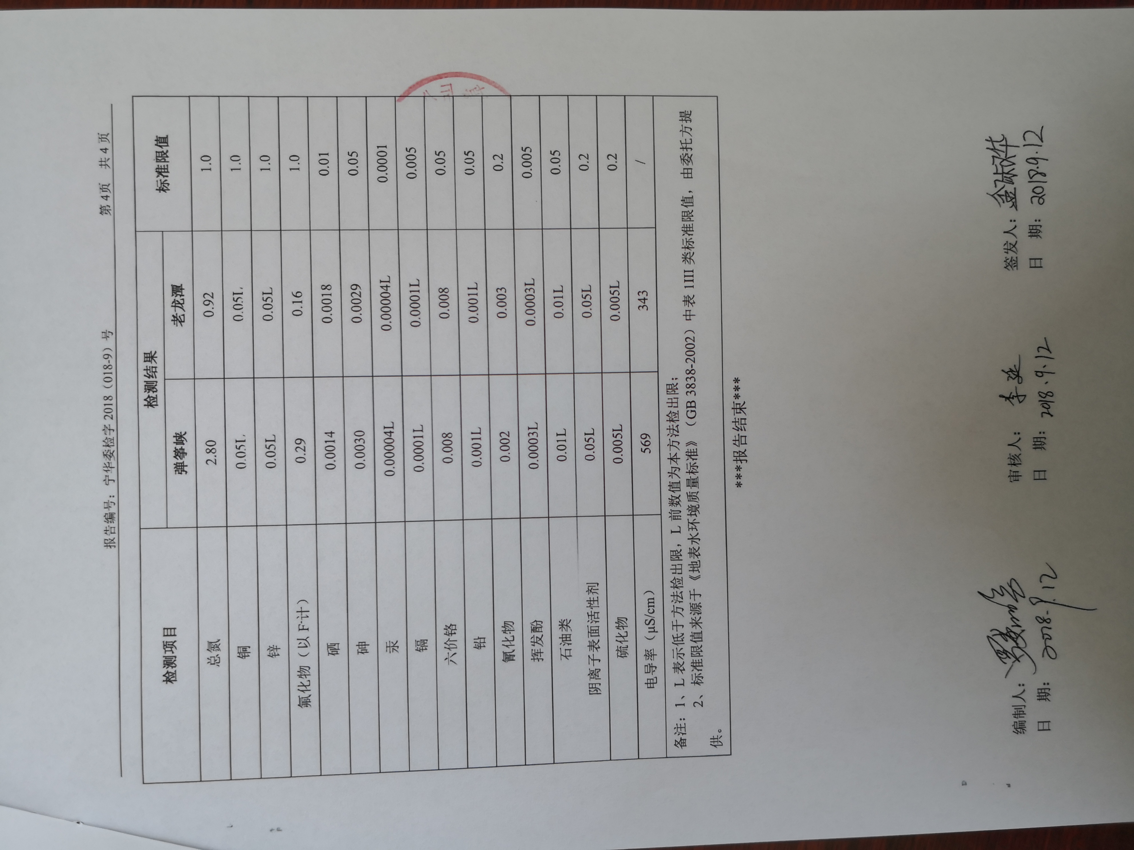 2018年9月水质检测