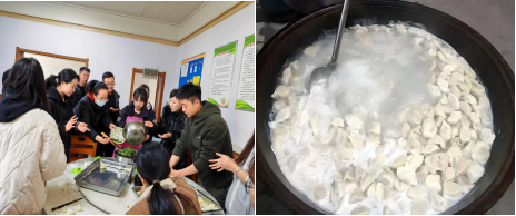 活动伊始,食堂内便热闹非凡。大家热情高涨,纷纷挽起袖子,分工协作,剁馅、和面、擀皮、包饺子,每一个环节都有条不紊地进行着。有人手法娴熟,包出的饺子饱满圆润;有人现学现做,包出的饺子形态各异,现场欢声笑语不断,气氛温馨融洽。乡长也参与其中,带领着大家擀饺子皮,包饺子。在大家的努力下,一盘盘饺子摆满了桌面,形状各异的饺子如同一件件精美的艺术品,寄托着大家对冬至这个传统节日的美好祝福。待水煮沸后,将饺子轻轻放入锅中,它们如同欢快的鱼儿在水中翻滚嬉戏,随着时间的推移,饺子逐渐变得饱满圆润,不一会儿,热气腾腾的饺子端上了桌,大家围坐在一起,品尝着自己亲手包的饺子,分享着劳动的喜悦和节日的快乐,不时听到欢声笑语。
