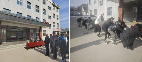 随后的趣味活动更是将气氛推向了高潮。拔河比赛现场,干部职工并肩作战,双手紧握绳索,身体后倾,脚蹬着地,在哨响声中齐心发力,绳索在两队间紧绷,加油助威声响彻上空。跳大绳环节中,队员们鱼贯而入,轻盈跳跃,长绳在空中划出一道道弧线,不一会儿,便跳出一身汗;个人跳绳比赛的选手们身轻如燕,彩绳飞舞,展现出敏捷的身姿;踢毽子的场地五彩斑斓,毽子上下翻飞,干部们灵活用脚控制着毽子的起落;而在蒙眼铭锣处,参与者蒙着双眼,在队友的指引下,摸索着前行,那小心翼翼又充满期待的模样令人忍俊不禁。整个操场一片欢腾,加油声、欢笑声交织在一起,在这个冬至日谱写着和谐、欢乐的乐章。