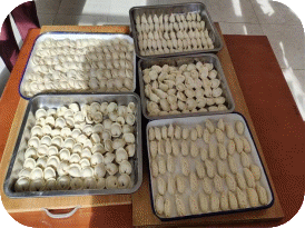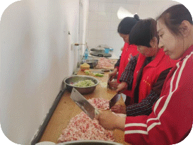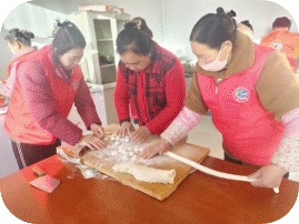 随后,村妇联主席组织村里的妇女们早早来到新时代文明实践站。大家分工协作,有的切陷儿、有的揉面、有的擀皮儿、有的包饺子,大家边干活边分享各自的日常生活,每个人的脸上都洋溢着幸福满足的笑容。人多力量大,不一会儿,一盒盒胖嘟嘟的饺子就包好了。