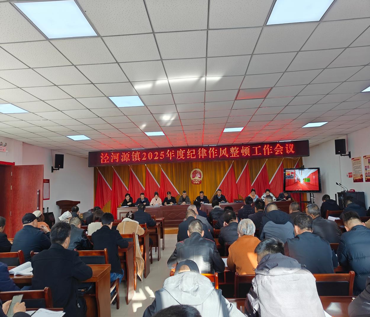 为扎实推进作风建设有力有效、走深走实,筑牢党员干部思想防线,锻造一支作风优良、廉洁自律的党员队伍,3月10日上午,泾河源镇组织召开2025年度纪律作风整顿工作会议,镇党委书记韩满禄出席会议并讲话,镇党委副书记、政府镇长禹贵喜同志主持,镇全体党员干部、各村党支部书记、第一书记参加。