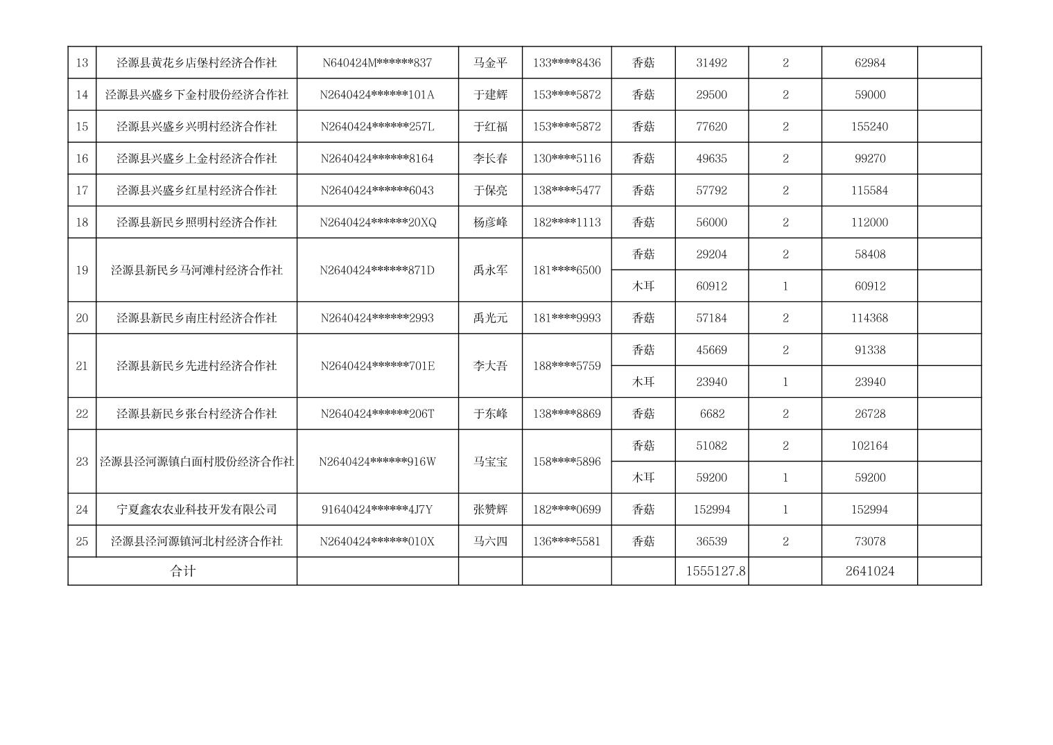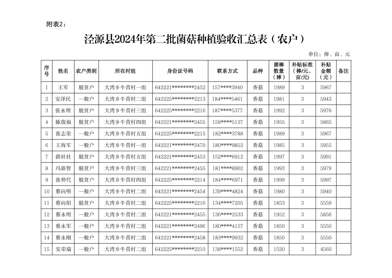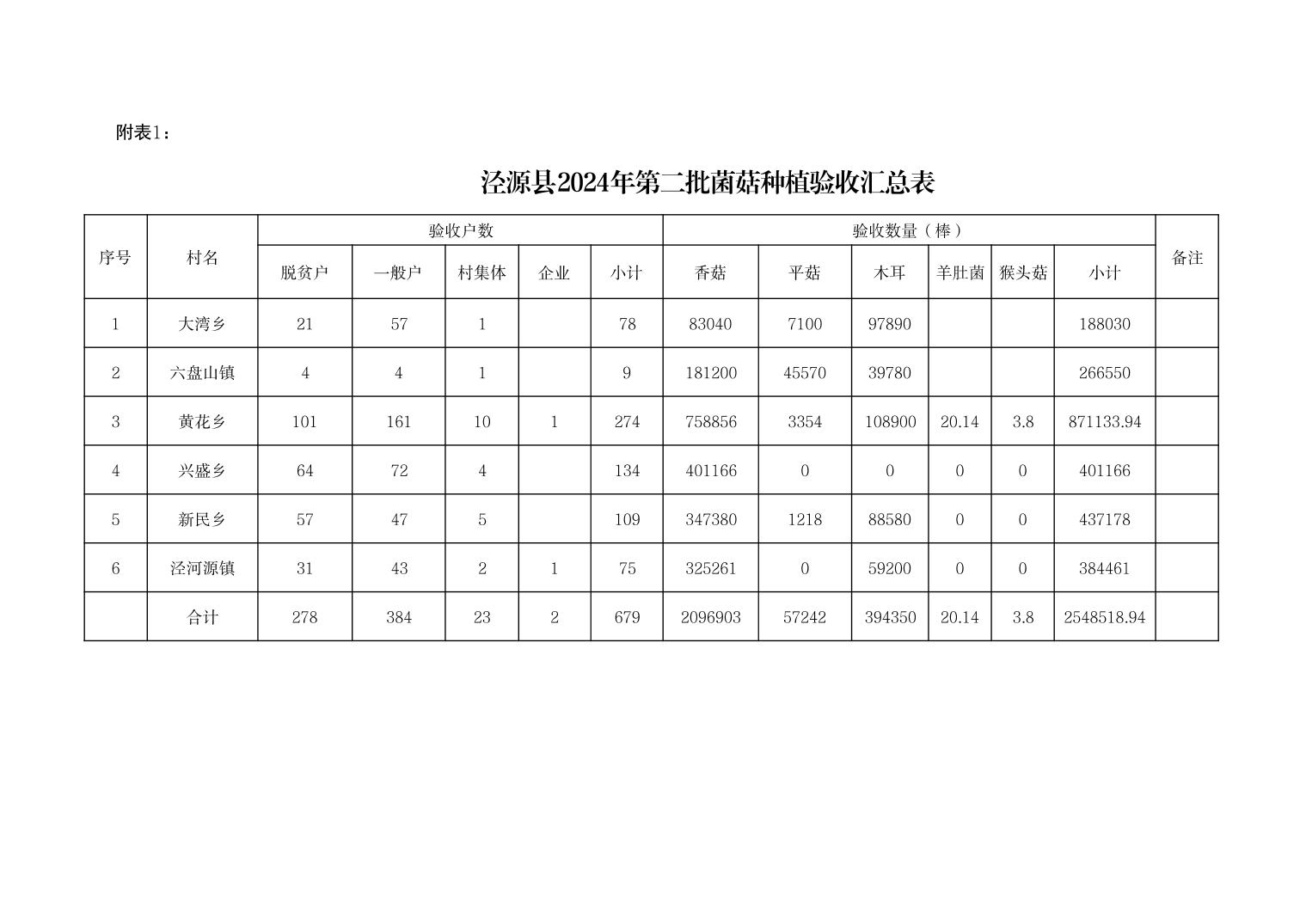 1.泾源县2024年第二批菌菇种植验收汇总表