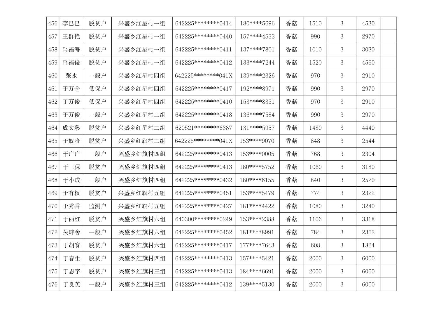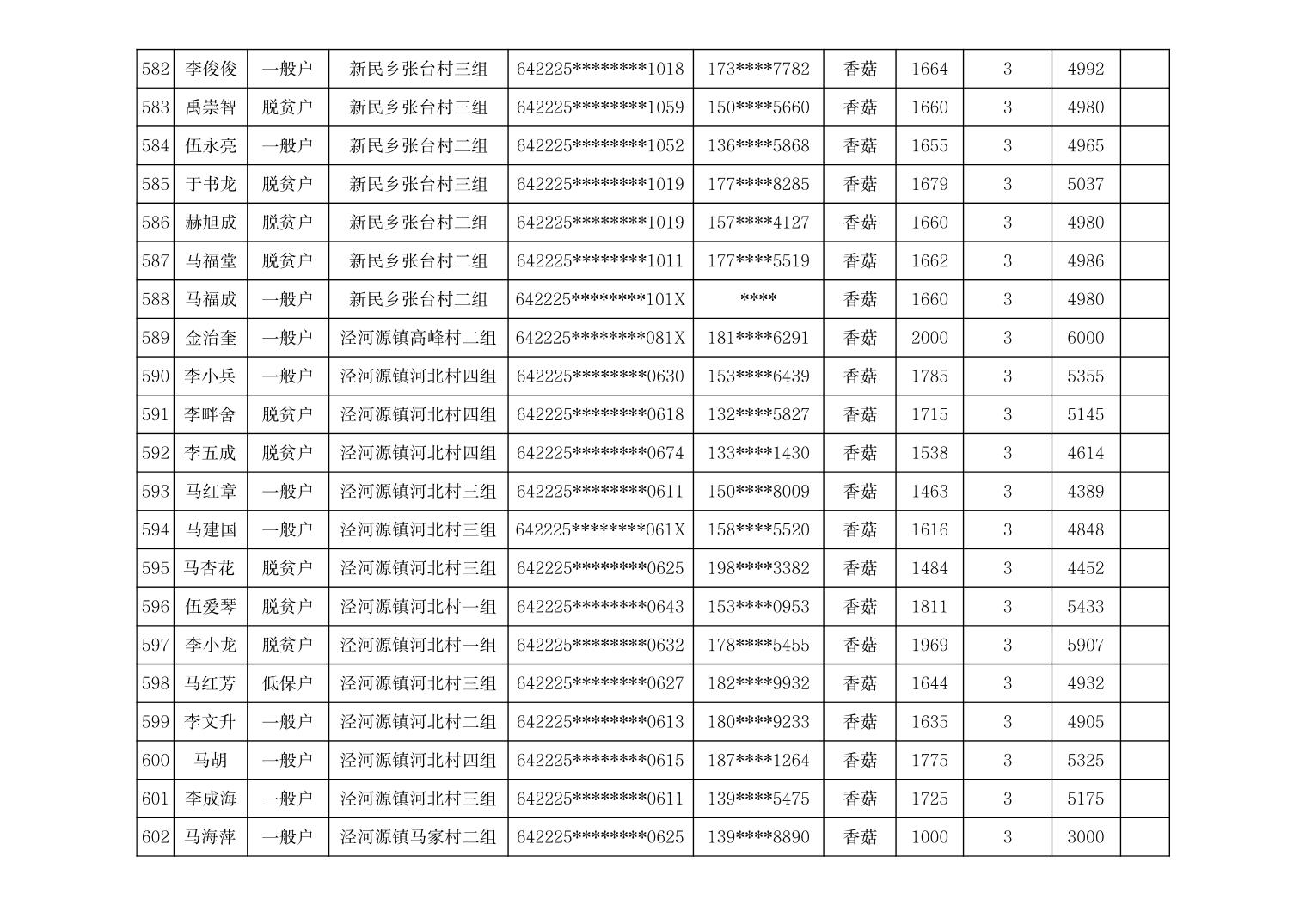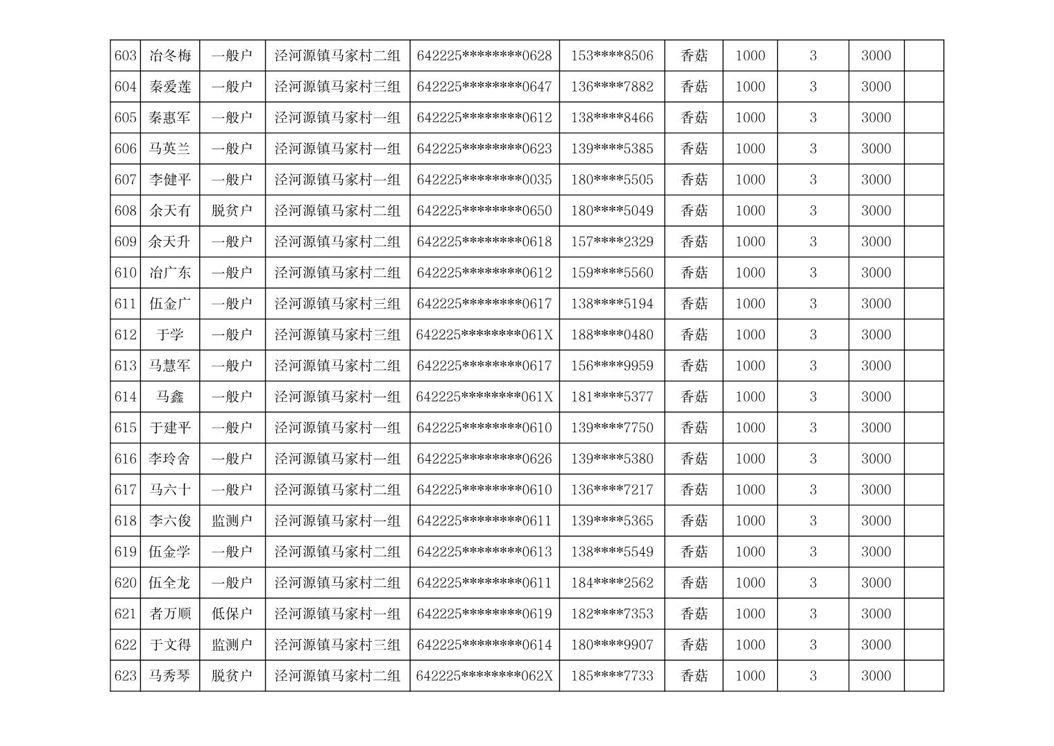 1.泾源县2024年第二批菌菇种植验收汇总表