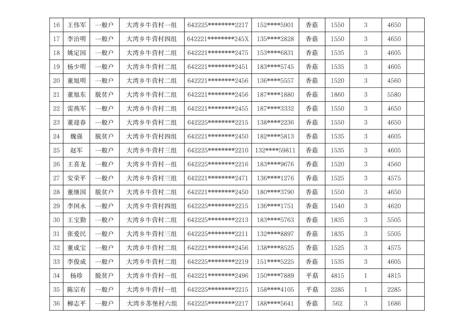 2.泾源县2024年第二批菌菇种植验收汇总表(农户)
